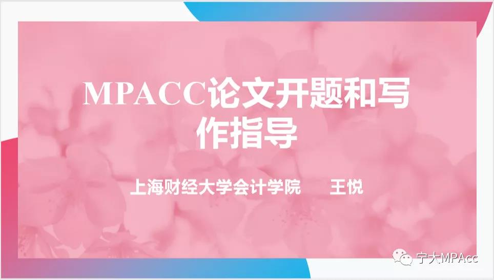 会计专硕教育中心主办的主题为《MPAcc论文开题与写作指导》的讲座顺利召开,本次讲座很荣幸地邀请到了上海财经大学会计学院王悦副教授作为主讲嘉宾,由四虎影院