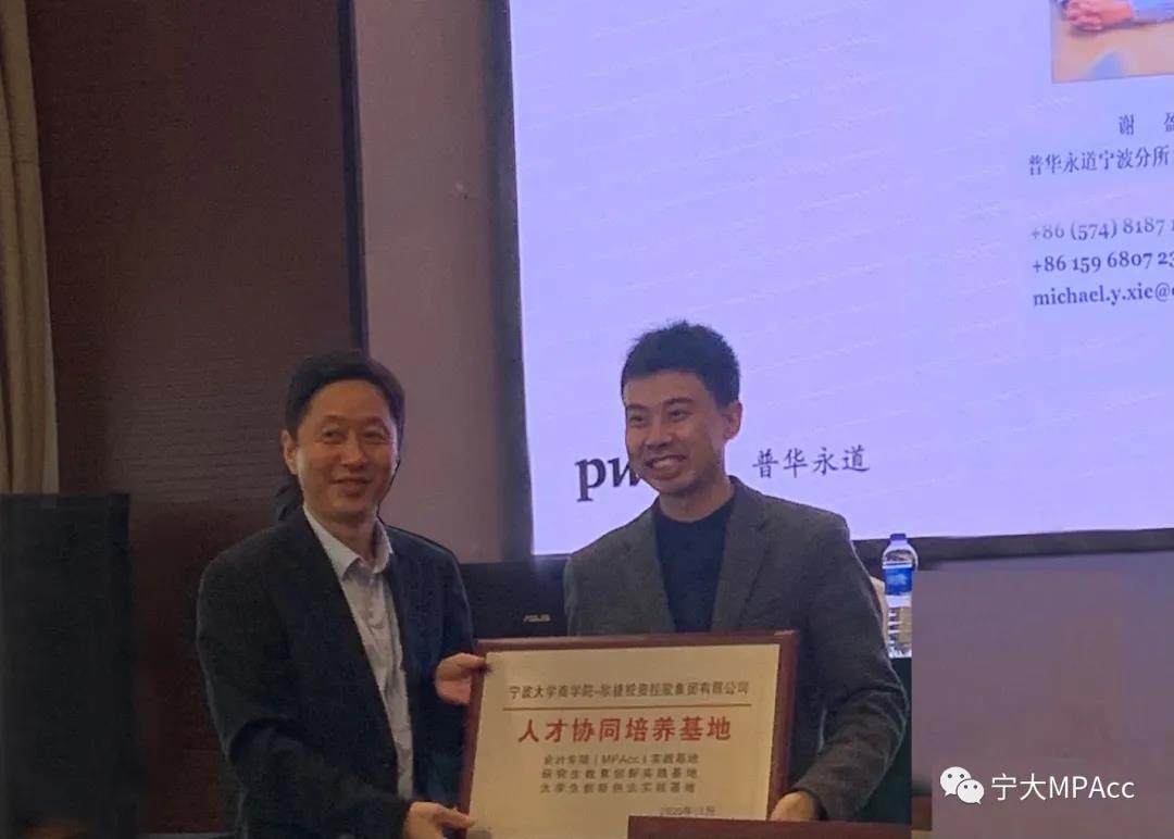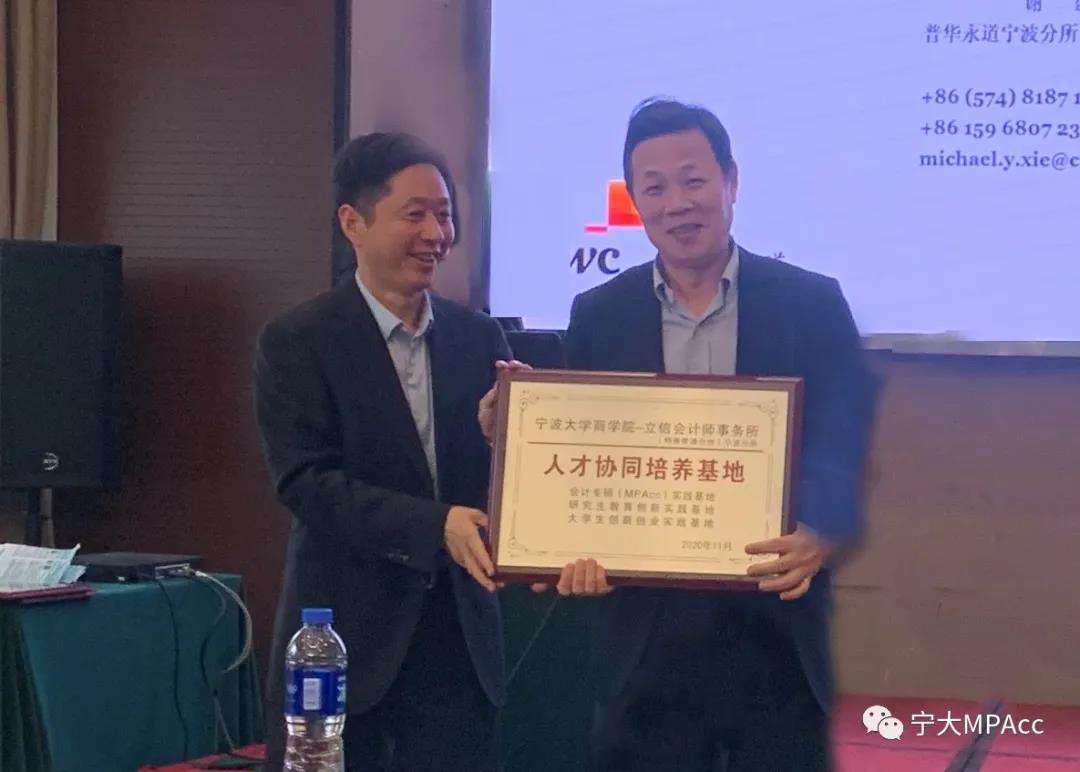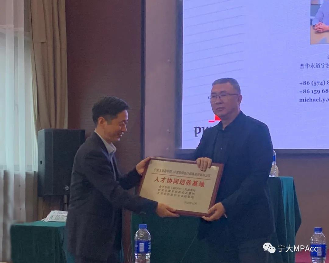 MPAcc实践基地牌匾。未来各方将积极促进产学研合作,推动企业、院校协同发展。