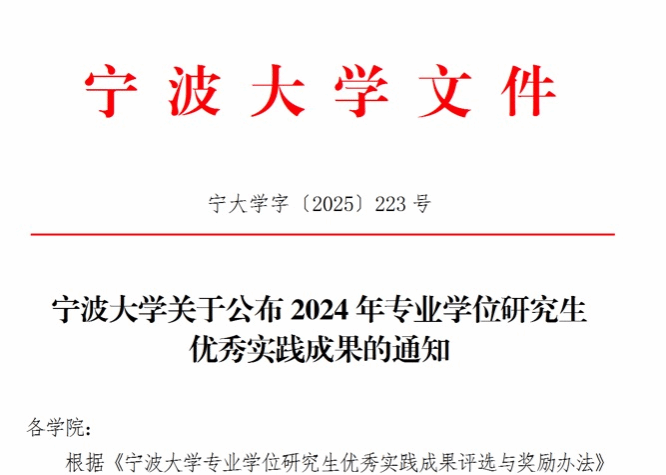 公布2024年专业学位研究生优秀实践成果评选结果(宁大学字〔2025〕223号),四虎影院