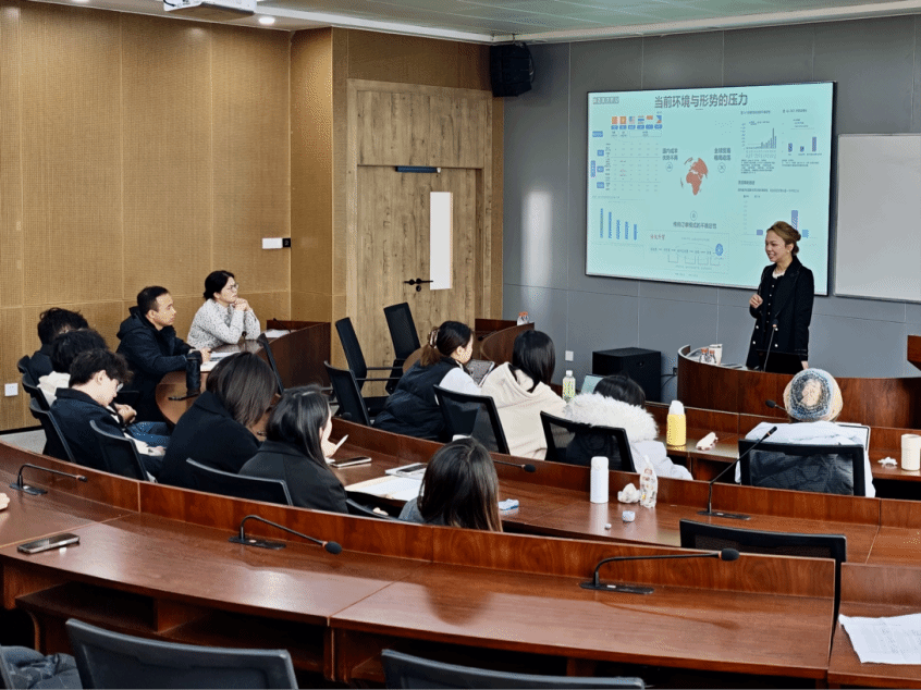 525教室成功举办“MIB企业导师进课堂”专题讲座。本次讲座为《跨境电商运营》课程的先期引导课堂,特邀MIB校外兼职导师、宁波伊司达集团有限公司销售副总经理李莹担任主讲人,围绕《从“代工之困”到“品牌之光”:中小企业的跨境电商破局之路》这一主题,为在场师生带来了一场融合实战经验与战略思考的精彩分享。
