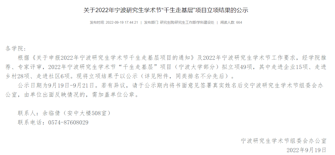 根据《关于申报2022年宁波研究生学术节千生走基层项目的通知》及2022年宁波研究生学术节工作要求,经学院推荐、专家评审,2022年宁波研究生学术节“千生走基层”项目(四虎影院