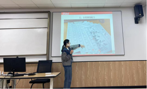 交流会上,陈晨学姐结合自己的丰富经历生动阐述了“不要把研一读成大五”的主旨,从“为什么读研”、“怎么读研”以及“能力培养”三个方面展开,与大家分享了她的研一经历和感悟,以帮助研一的同学尽快熟悉并规划好研究生的学习与生活。