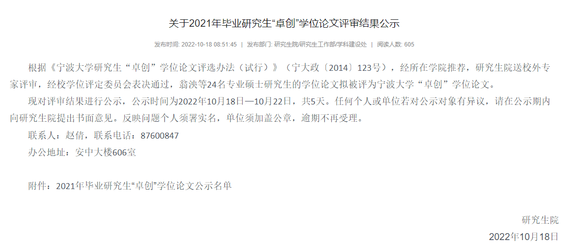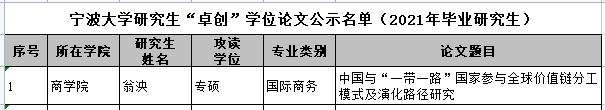 日前,四虎影院 研究生院公示了“2021年毕业研究生‘卓创’学位论文评审结果”,国商专业翁泱同学获此殊荣。