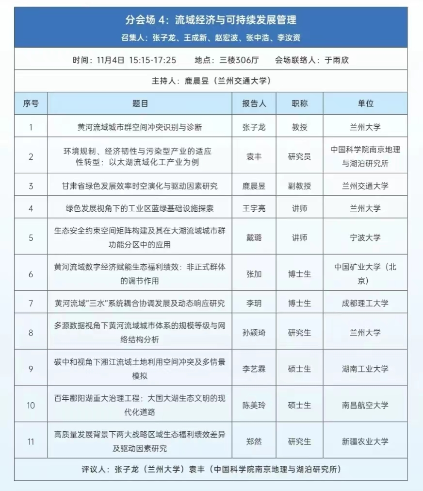 11月4日下午和11月5日上午,本次会议特别组织了国家自然科学基金与青年学者面对面活动、青年学者主旨报告及14个分会场学术报告,与会代表围绕“城市低碳发展与时空大数据管理”“城市化与重大工程布局”“典型大湖流域减污降碳协同治理”“流域经济与可持续发展管理”“城市有机更新与管理”“国土空间规划与中国式现代化”“城市与区域治理数字化与金融化创新”“乡村振兴和城乡统筹发展”“城市与区域治理现代化”“区域创新与高质量发展”“区域经济韧性与产业发展政策”“生态文明建设与环境治理”“双碳战略下的城市与区域响应”“要素流动与区域一体化发展”等领域展开研讨,共话推动面向中国式现代化的城市与区域管理创新的理论与实践。