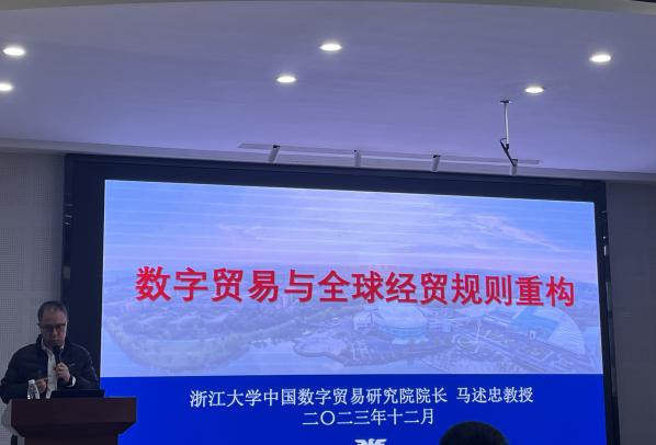 数字贸易以数据资源做为依托,能够在短时间完成大量的交易,不仅省时省力,而且能够以更低的成本完成交易。如何发展好数字贸易成为各国发展的重要课题之一。2023年12月13日我校有幸邀请到了浙江大学数字贸易研究院院长马述忠教授、东方理工研究院金鑫助理教授走进《数字贸易学》课堂,为我校MIB学生讲述数字贸易领域最前沿的信息。