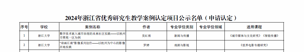 2024年10月,根据《浙江省优秀研究生教学案例认定试行办法》(浙研教字第2023〕08号)文件精神,按照公平、公正、公开的基本原则,浙江省研究生教育学会组织开展了2024年浙江省优秀研究生教学案例认定工作。按照评选办法,经过个人申报、培养单位推荐、形式审查等程序,共选出818项2024年浙江省优秀研究生教学案例,其中直接认定120项,申请认定698项。