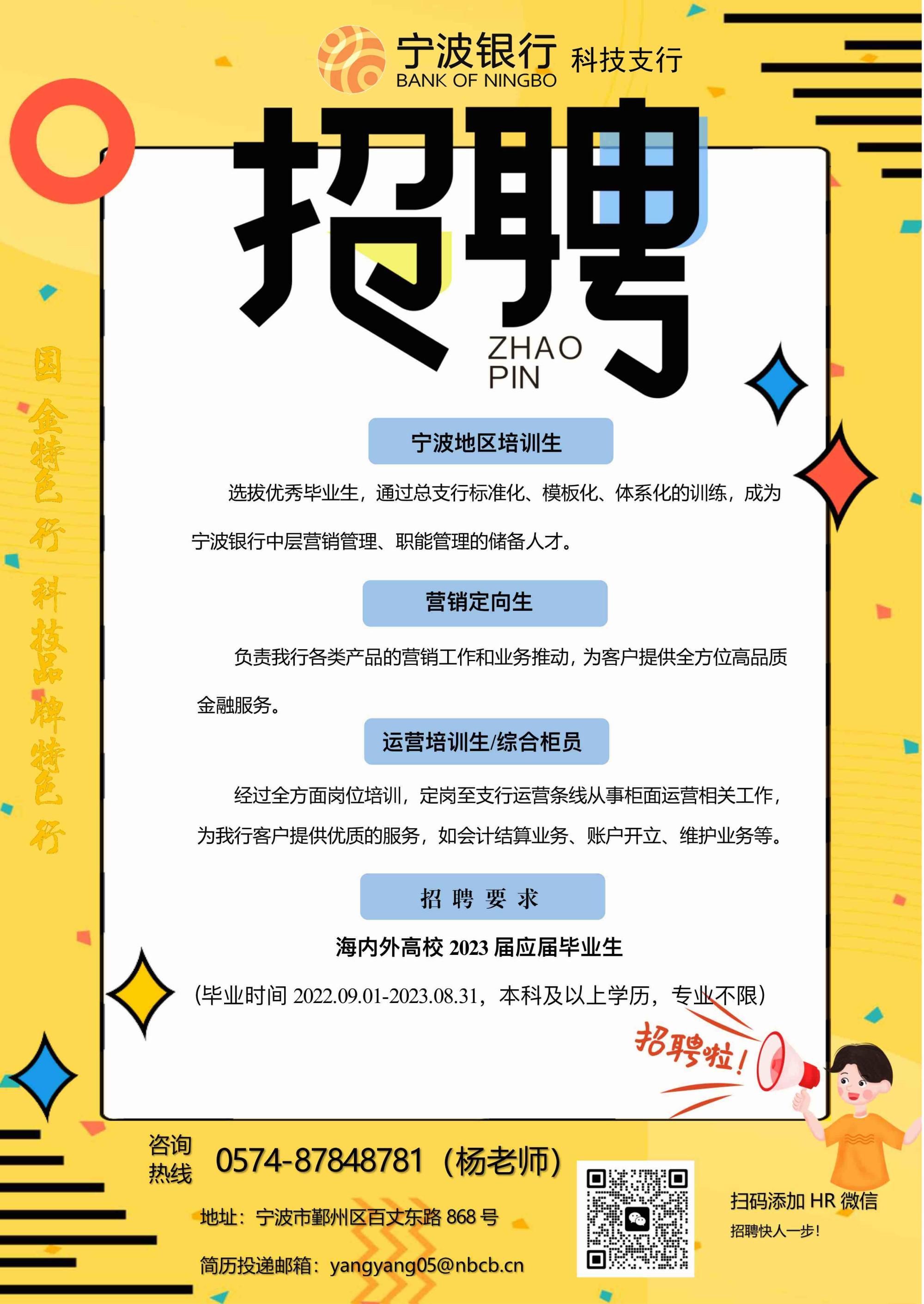 宁波银行 科技支行招聘简章