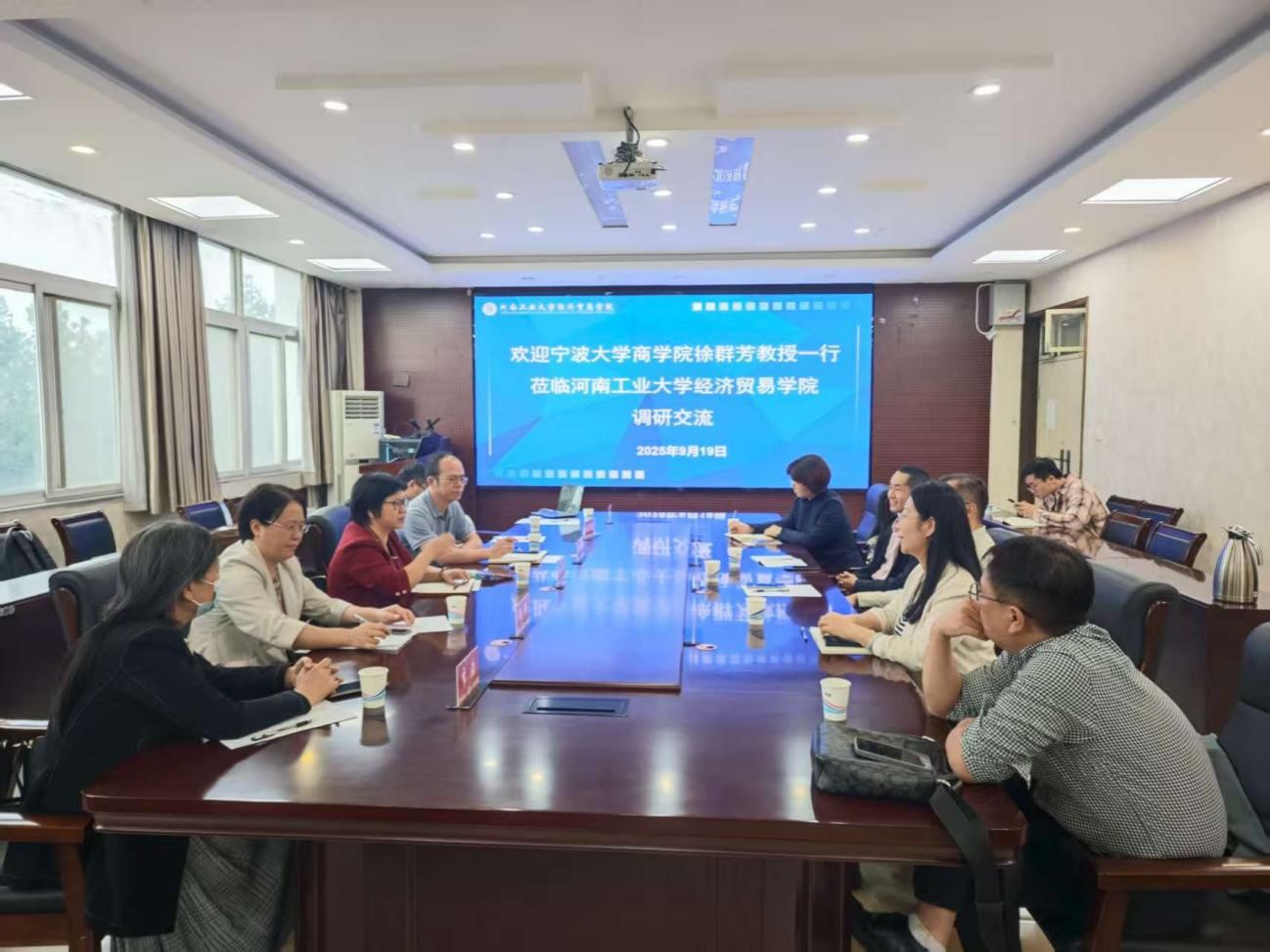 最后,调研团队前往河南工业大学经济贸易学院,受到副院长郭力教授、经济系主任何宇鹏教授以及《政治经济学》和《微观经济学》国家一流课程负责人与创新比赛获国家级奖项老师的热情接待。双方重点围绕支部建设、经济学本科和数字经济专硕培养方案、一流课程建设和教学创新比赛等方面展开深入交流讨论,重点探讨了研究性教学如何开展、线上线下课程的混合方式方法、智慧课程的建设及课程教学的精心打磨和创新积累过程等。