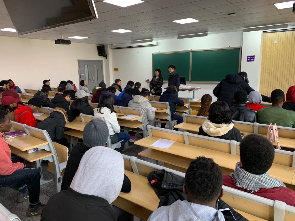 2019年1月18日,四虎影院 在包玉书科学楼8号楼101室召开留学生寒假留宿安全稳定会议。院党委副书记韩雯琛、学工办主任董璐、部分留学生班级班主任、留学生辅导员及寒假留宿留学生参加了此次会议。