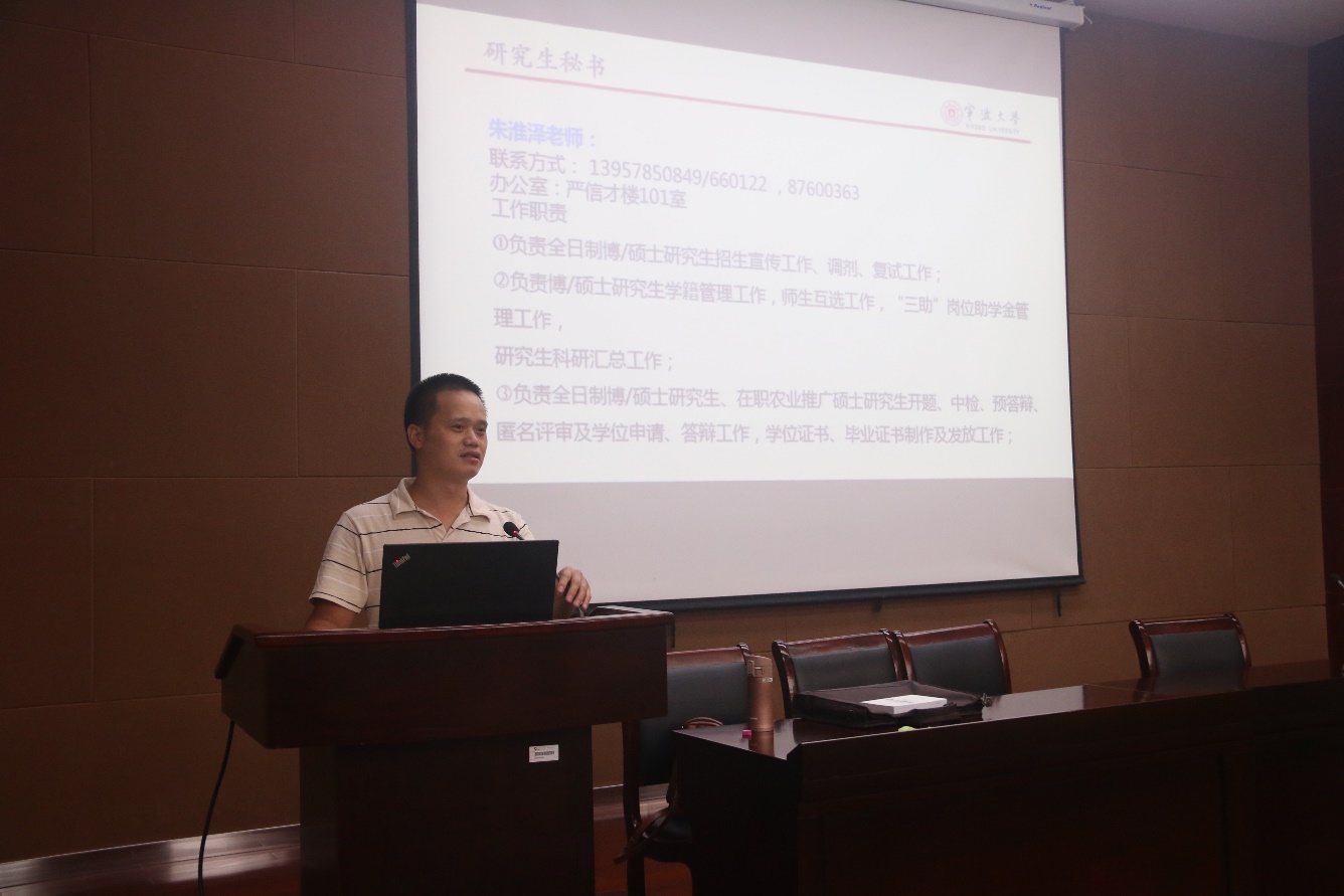 8月29日下午,四虎影院 2019级研究生入学教育会在王明康楼一楼报告厅顺利召开。学工办主任陈彬,学科与研究生办主任朱淮泽,辅导员周双双,兼职辅导员章浩燕以及2019级全体研究生参加本次入学教育会。