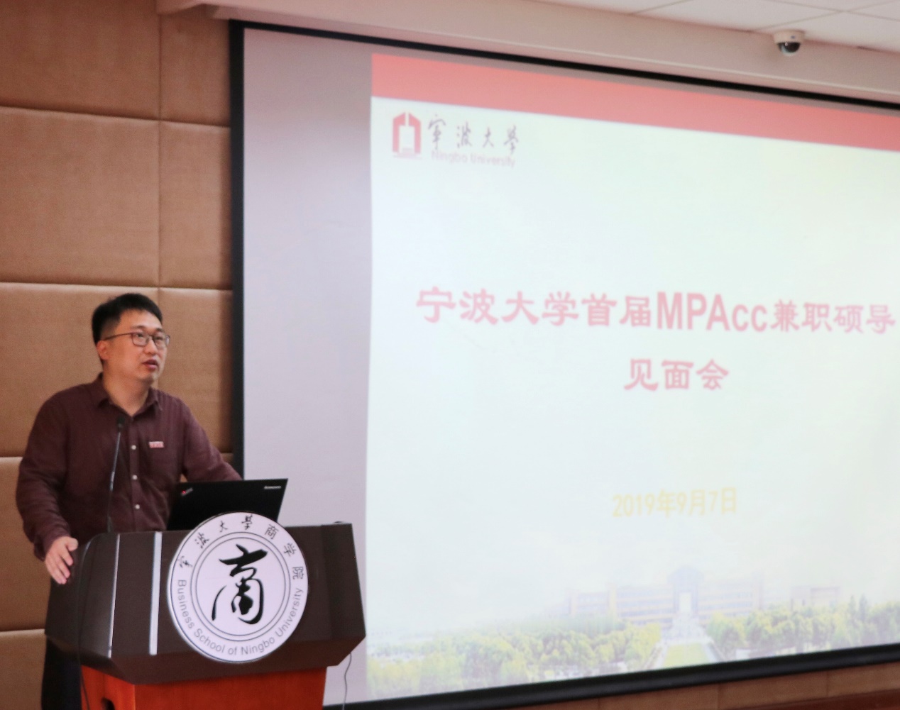 2019年9月7日,四虎影院 首届会计专硕(MPAcc)兼职硕导见面会于四虎影院 顺利召开。出席会议的有中国会计学会理事、中国会计学会会计教育专业委员会委员、四虎影院 会计国际发展中心研究主任、四虎影院 会计专硕学位点主任邱妘教授、四虎影院 会计专硕学位点执行主任陈翼然博士、宁波世明会计师事务所有限公司董事长李钢、舜宇光学科技(集团)有限公司总裁孙泱、香溢融通控股集团股份有限公司副总经理沈成德、慈溪农村商业银行副行长戚建明、雅戈尔集团股份有限公司副总经理刘新宇,以及2019级会计专硕全体学生。会议由陈翼然老师主持。