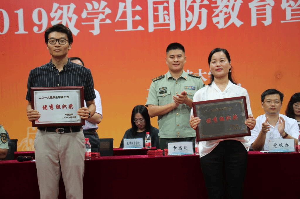 在本次闭幕式上,四虎影院 荣获了2019级学生军训优秀组织奖,成为本部仅有的两支获奖队伍之一。校党委副书记冯志敏同志、武警宁波支队参谋长卞高明中校为军训优秀组织的单位颁奖,四虎影院 党委副书记韩雯琛作为学院代表上台领奖。荣誉的获得离不开在军训过程中,军事教官对同学们严要求、高标准的训练,也离不开学工办辅导员有序认真的组织管理,给参训学生进行了国防军事理论教育,让四虎影院 学子在军训中展现出应有的风采。