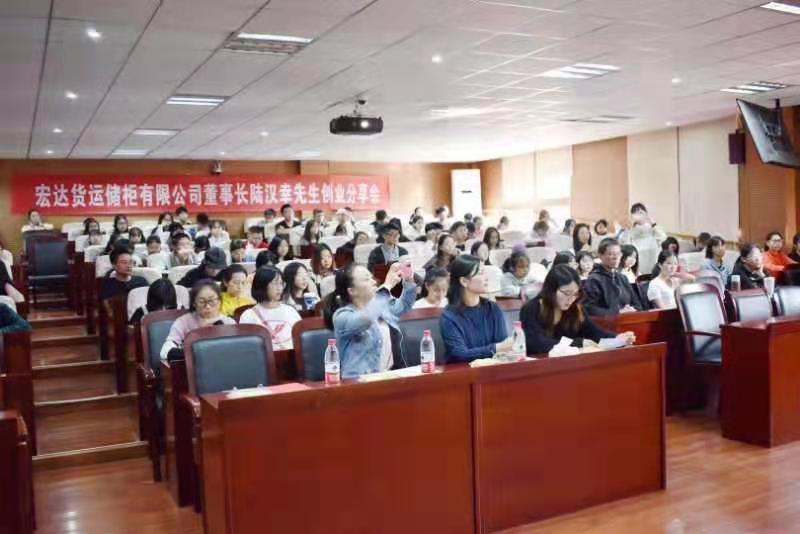 这次的分享会,有着宏达货运储柜有限公司董事长身份的陆汉幸先生,以一个教导者和长辈的口吻,将他自己的成长历程和创业的艰辛娓娓道来。他和同学们分享了自己创业路上的重要体会。第一点就是要有事业心,胸怀大志,致力于为人类和社会做出贡献,在学习的路上一定要永不止步,与时俱进。第二点,秉持一颗敬畏之心,对于金钱更是如此。正所谓“君子爱财,取之有道”。第三点是时刻要怀揣一颗感恩之心。感恩我们的父母、学校、党和祖国。