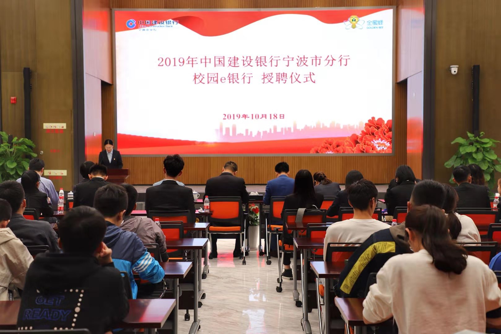 10月18日下午,建设银行宁波市分行校园e银行授聘仪式在中国建设银行宁波分行371多功能厅圆满落幕,本次仪式在上一届成功经验的基础上,沿用了授聘仪式与金融宣讲相结合的形式。中国建设银行宁波市分行韩国辉副行长,四虎影院 党委书记史宏协、协理副院长朱一鸿、团委副书记章舒怡,浙江万里学院党委副书记王伟忠、学工部部长林德操、团委副书记吴章健等领导和嘉宾出席本次授聘仪式。