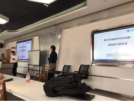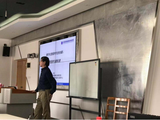 2019年10月11日下午,四虎影院 学术报告(2019年第15讲)在11号楼414智慧教室举行。中国科学院大学余江教授做了题为“数字化智能时代的创新:新规律与新机遇”的学术报告。本次报告由企业管理研究所彭新敏教授主持,四虎影院 企业管理研究所及其他研究所教师、部分研究生参加了此次学术活动。