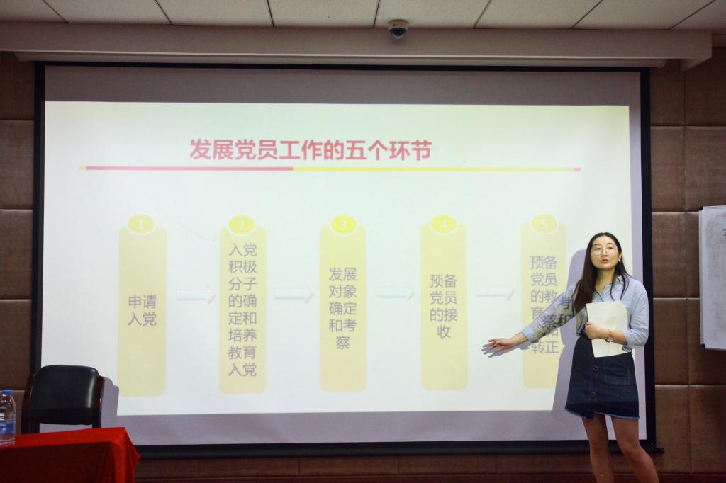 本次党课首先向2020级工商管理(中加学分互认)和2020级工商管理(第二学位)的44名本科新生提出了“如何过好自己的大学生活?”“如何让自己的人生更有价值?”两个问题。接着,周双双从入党的重要意义,从国家和社会需要几个层面解答了同学们心中“我为什么要入党?”的疑惑,并还详细地介绍了入党的申请流程和申请要求,为想要入党的同学做好思想引领和政策解读。最后,周双双向同学们提出了入党的条件,不仅要在思想上向组织靠拢,更应该用行动说话,学好专业知识同时,更应该为同学全心全意服务,吃苦在前,全方位提升自己。