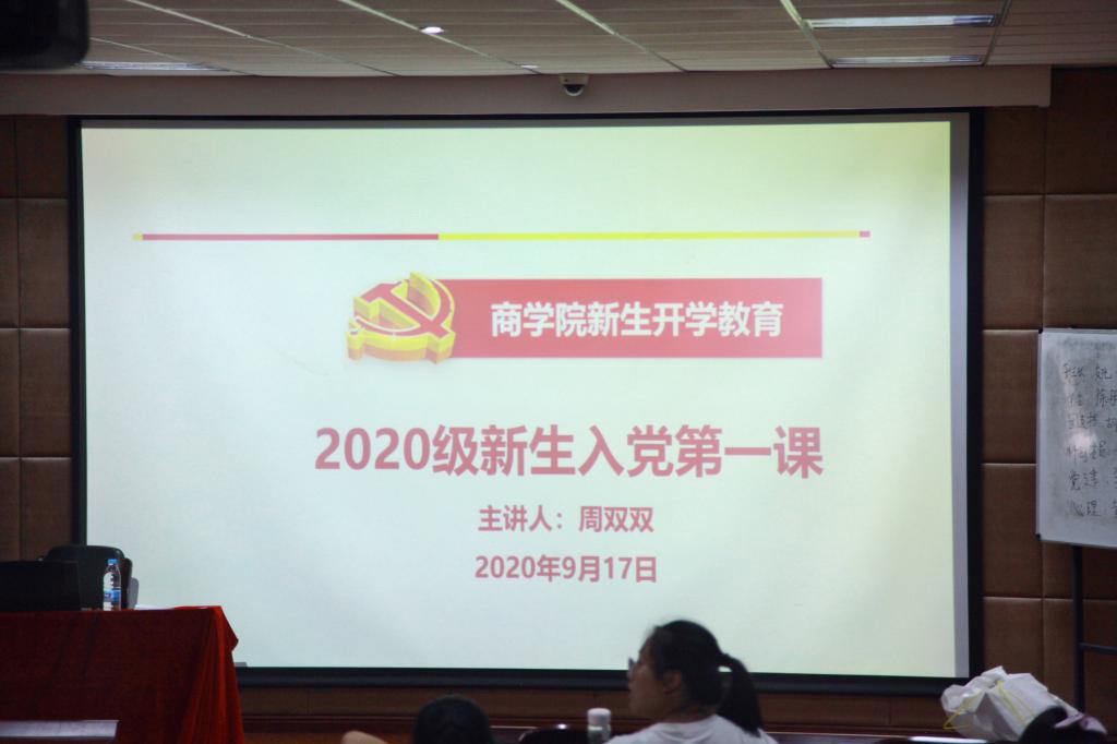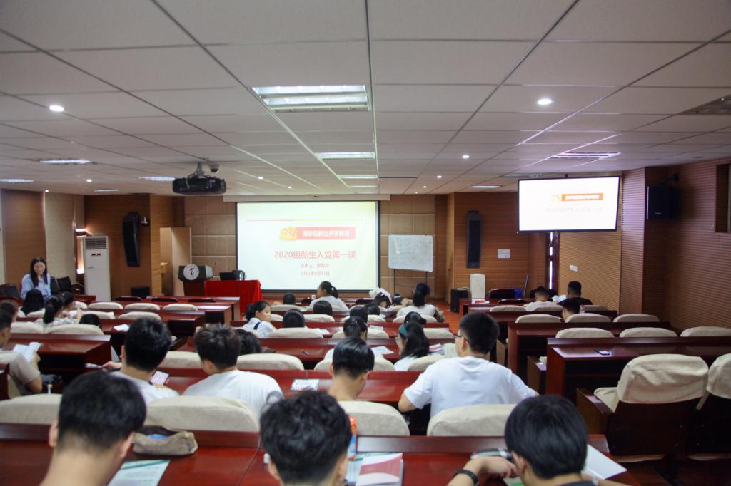 9月17日上午,四虎影院 2020级本科新生精心准备的入党第一课暨党务知识培训在学院109报告厅顺利举行。这一课由学院学生党建辅导员周双双老师主讲,四虎影院 全体本科新生参加。