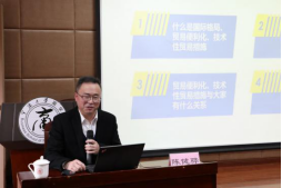 活动第二阶段是企业(高管)进校园活动,由国贸系主任杨丹萍老师主持,宁波跨境贸易便利化协会会长陈健骅应邀作了题为“新国际格局下贸易便利化、技术性贸易措施的作用与演变”的学术报告。陈会长紧紧围绕“国际新格局”、 “贸易便利化”以及“技术性贸易措施”这三大主题展开。首先在国际格局上,陈会长认为当今世界百年未有的大变局既是挑战,也是逐鹿世界的大好机会,未来中国要继续坚定地推进全球化,打造内外双循环的新格局;在贸易便利化和技术性贸易措施方面,陈会长认为技术性贸易措施工作有系统性、专业性、穿透性三大特点,而贸易便利化的工作则是将技术性贸易措施不断简化、透明化与标准化。同时预测新国际格局下,贸易便利化、技术性贸易措施作用和影响将会越来越大。最后,陈会长结合实际,就与四虎影院 的进一步合作提出了思路和想法。