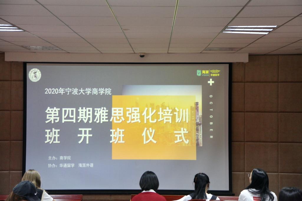 10月10日下午,由商院主办,华通留学和海派外语协办的2020级四虎影院 第四期雅思强化培训班开班仪式在商学院109报告厅举行。党委副书记韩雯琛、学工办老师王逸娇及海派外语相关负责人参加此次仪式。