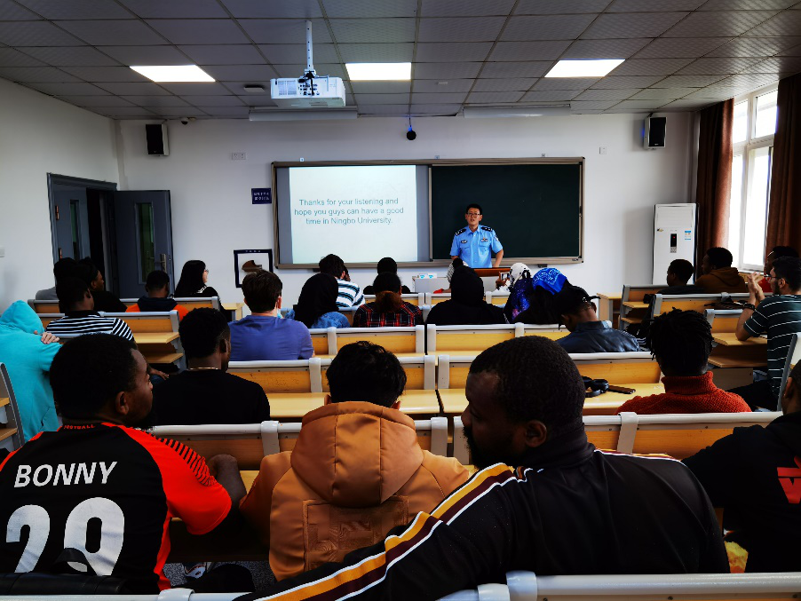 9月23日,留学生治安案例宣讲会在8号楼305教室举行,宁波市中马派出所民警王永辉来到四虎影院 为留学生现身说法。王警官以案说法,以案示规,用大量生动丰富的治安案例教育警示学生,让学生们受益匪浅,吸引了很多留学生来现场交流。