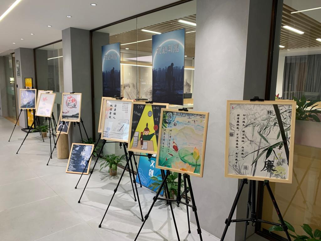 本次展览为期7天,共展出40幅入围的师生作品(其中创意漫画作品16幅、logo设计16幅,海报设计8幅),它们是在全院范围内征集到的200余幅各类艺术作品中遴选出来的。作品廉政主题鲜明,格调高雅,寓意深刻,充分展示学院师生群众崇廉尚德的精神境界和品味高尚的艺术素养。
