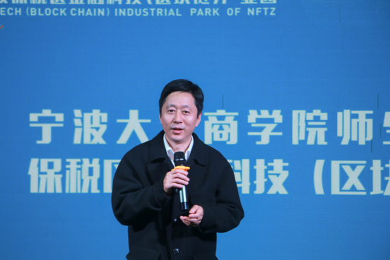 第一环节在宁波金融科技产业园的介绍短片中拉开帷幕。陆主任首先对宁大四虎影院 师生的到来表示热烈欢迎。随后介绍了保税区的发展史及目前在国际贸易、出口加工、保税仓储以及数字经济四大领域发展现状。保税区成立近30年,共5.3平方公里,经过历代保税人共同努力已经取得了不小的发展,保税区有限空间里要实现无限的发展,用新技术赋能传统产业转型升级,提高亩均产出,探索发展以数字经济为代表,包括金融科技、区块链、新经济、新业态、新模式,给予我们新的区域经济增长点。陆主任还殷切希望,未来园区与四虎影院 开展深度合作,双方发挥各自优势,共同推进产学研协同创新和人才协同培养,实现共赢。