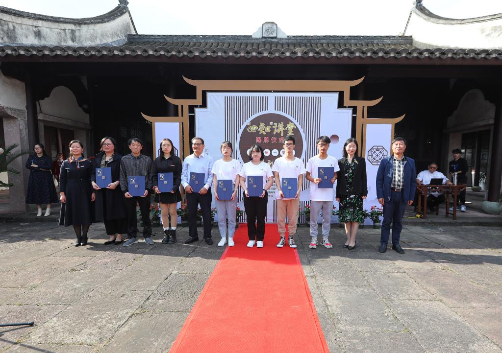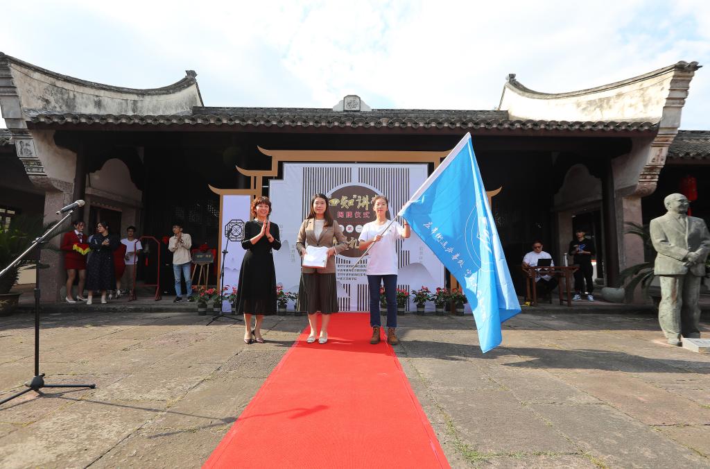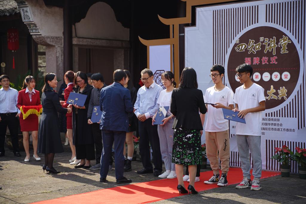 10月27日下午,四虎影院 与镇海庄市街道共同承办的“四知”讲堂揭牌仪式暨文“话”商帮宣讲团启动仪式在庄市街道江南第一学堂举行,四虎影院 党委副书记韩雯琛、院分团委副书记章舒怡出席,7名四虎影院 文“话”商帮宣讲团的同学参加了此次活动。