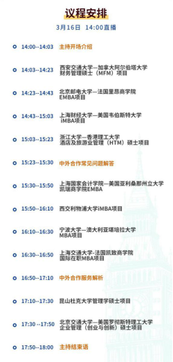 3月16日,由MBAChina专业学位网联合国内多家高校举办的“中外合作项目招生说明会”于线上举行。四虎影院 中澳MBA项目也积极参与了本场说明会,向在线180余位师生们介绍了宁大中澳MBA项目的基本情况、培养目标、特色优势和招生政策。在组织方和各高校代表共同努力下,招生说明会取得圆满成功。
