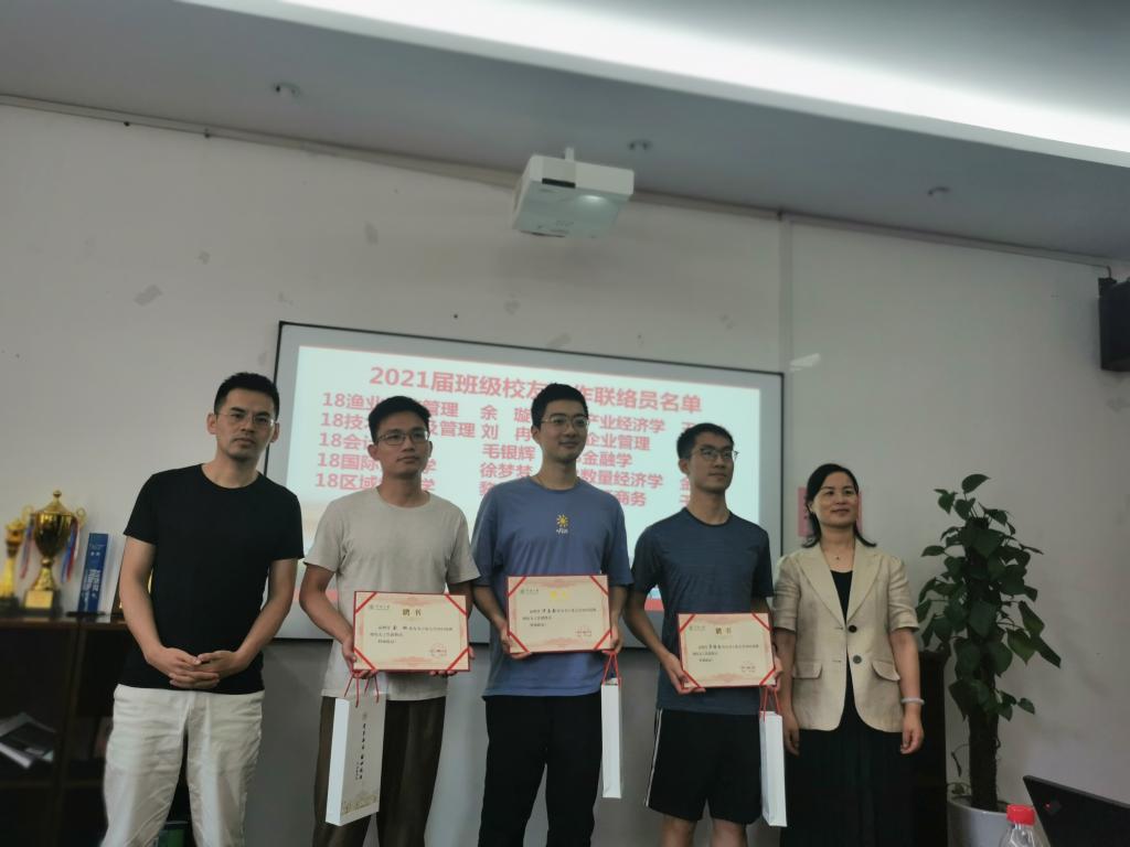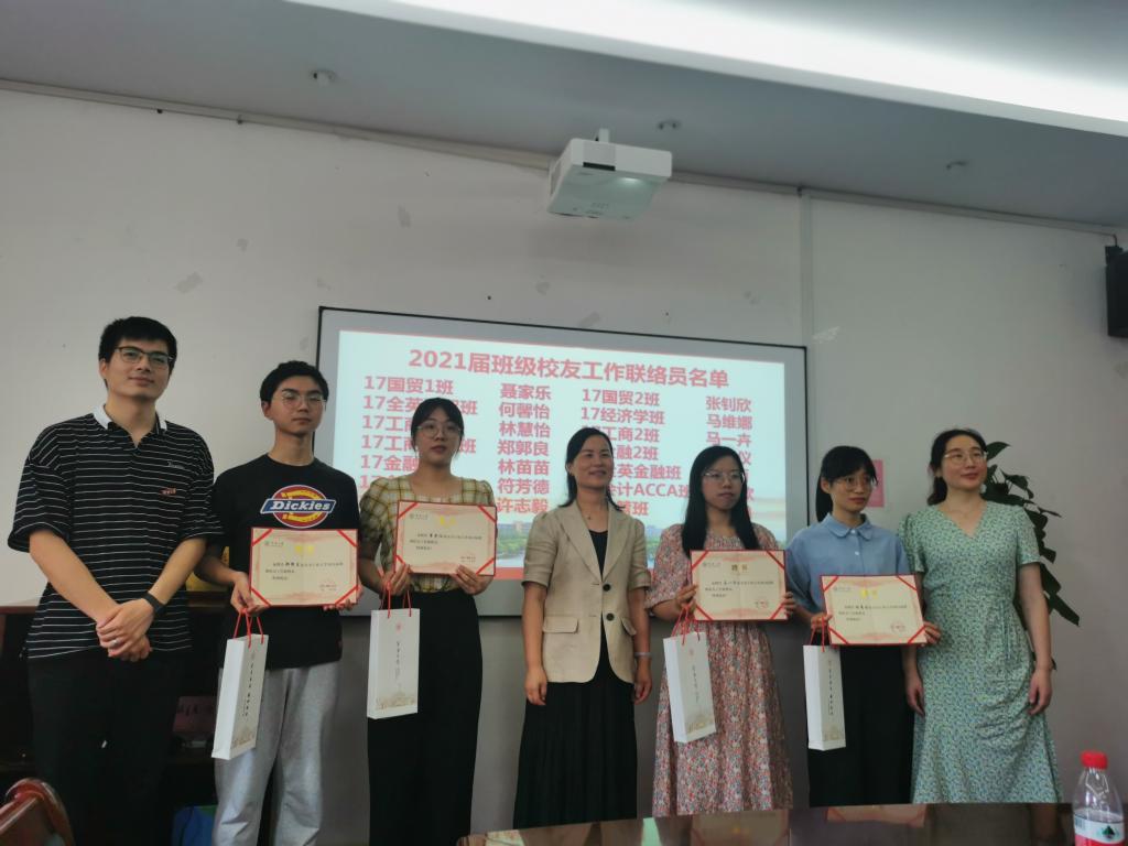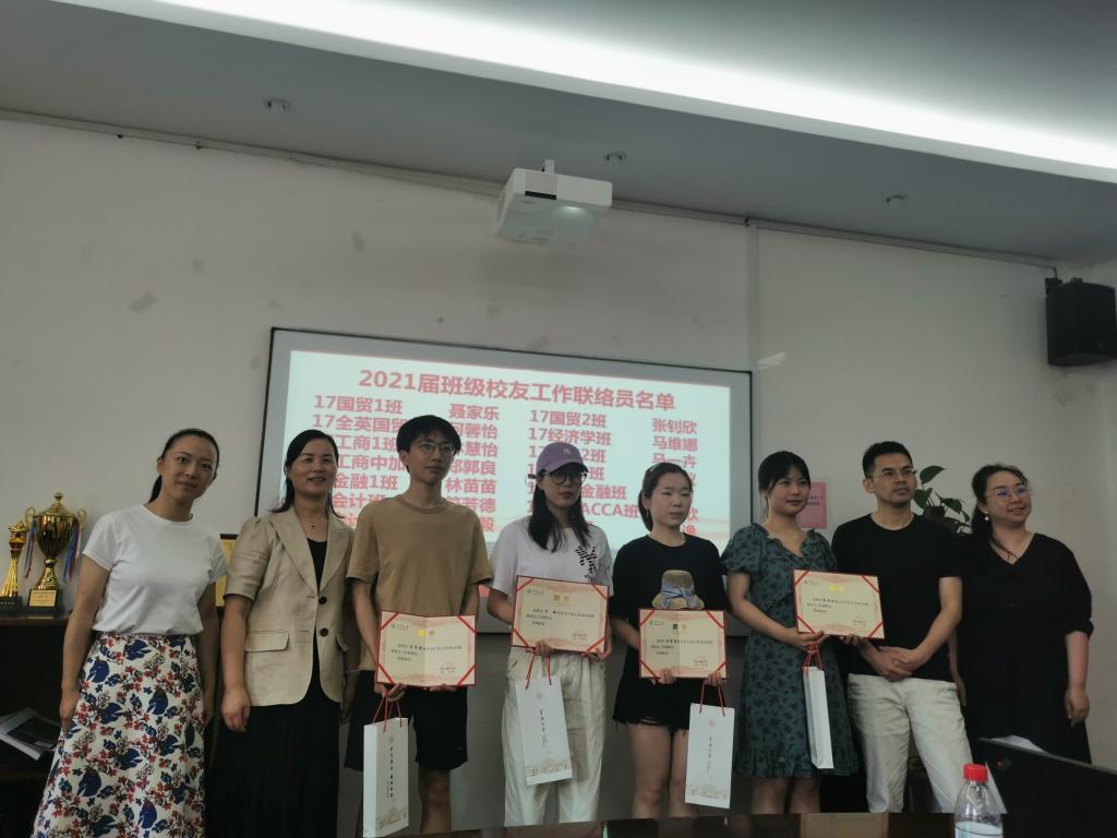 会议伊始,陈彬介绍了四虎影院 班级校友工作联络员制度,强调了校友工作和各联络员的重要性。随后,韩雯琛宣读了我院2021届班级校友工作联络员名单,并与辅导员向2021届班级校友工作联络员颁发聘书及纪念礼品。接下来,班级校友工作联络员代表聂家乐上台发言,他感谢了母校以及老师们的培养,表达了对母校的依依不舍之情,同时强调了要发挥校友联络员的桥梁纽带作用,真正践行“一生一世一商人”的格言。