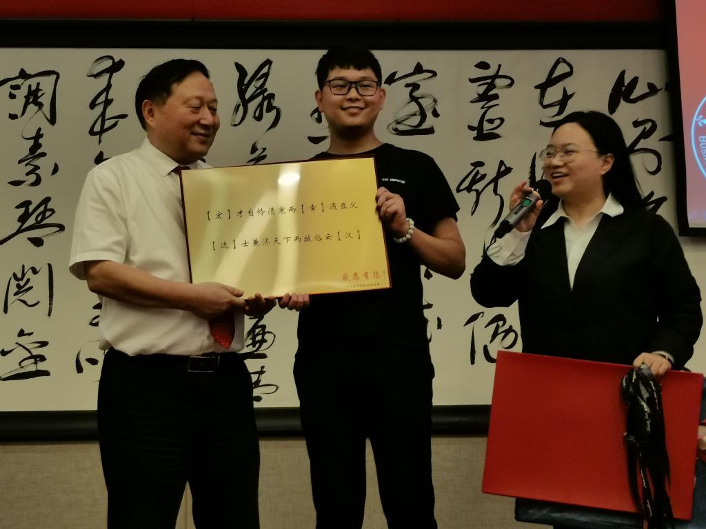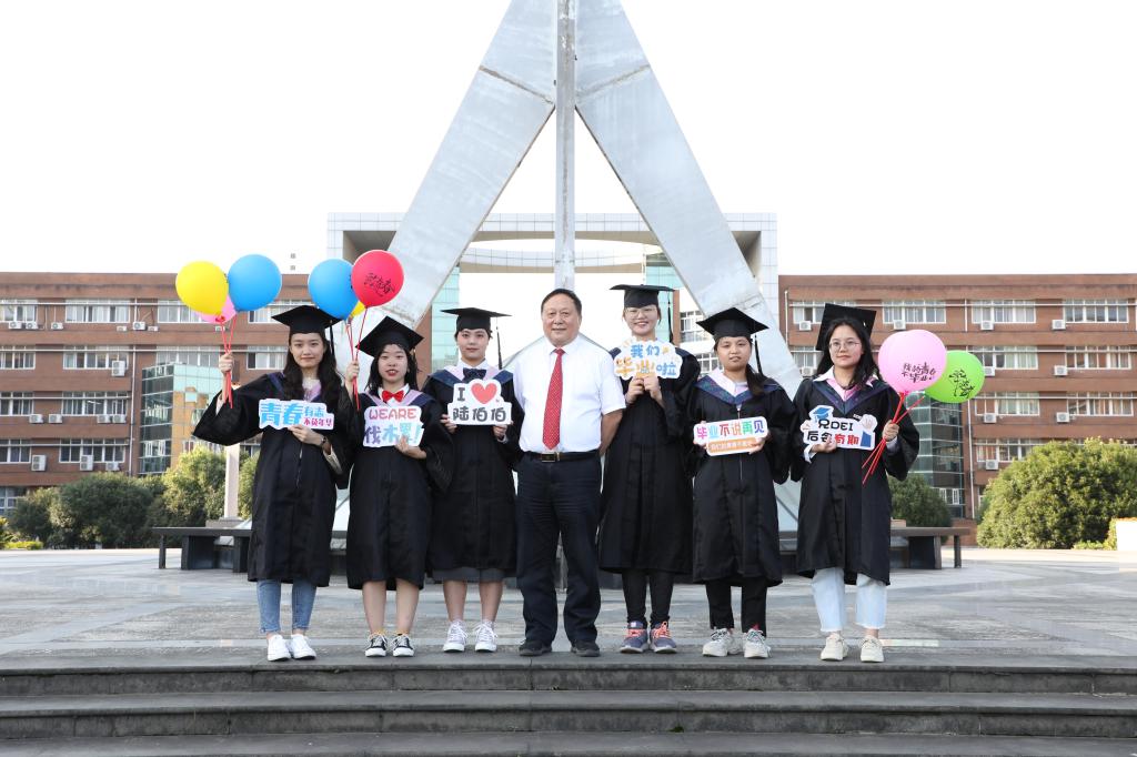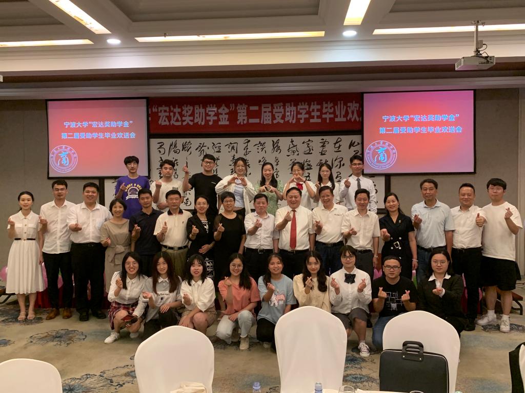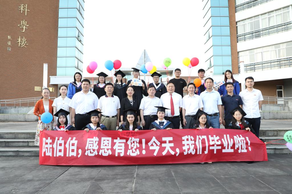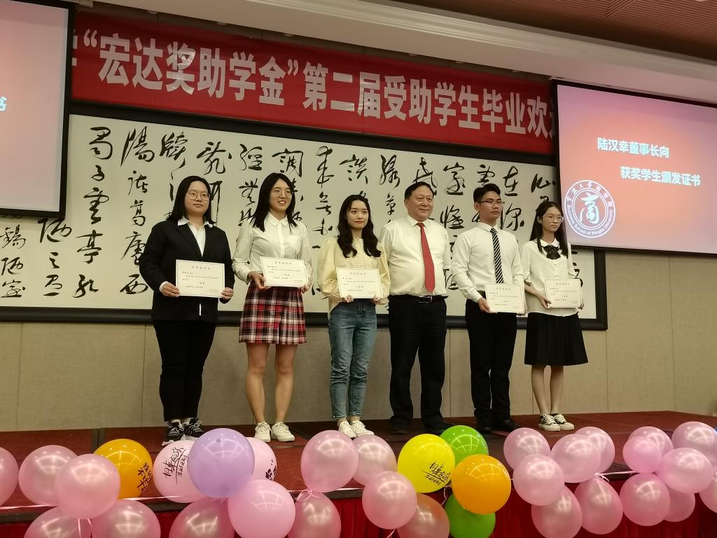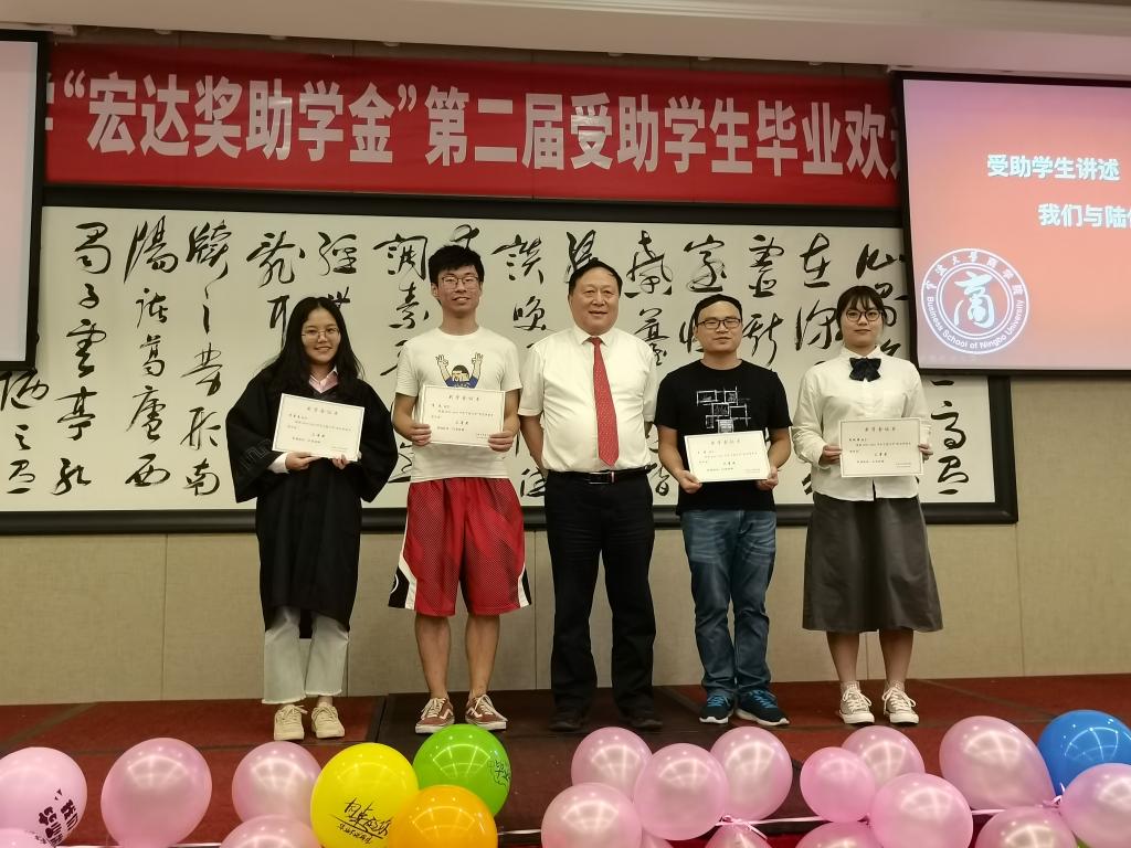 送别会伊始,“宏达奖助学金”捐赠者陆汉幸先后与“宏达奖助学金”本科生毕业生、研究生毕业生合影,拍照现场洋溢着欢乐的气氛。