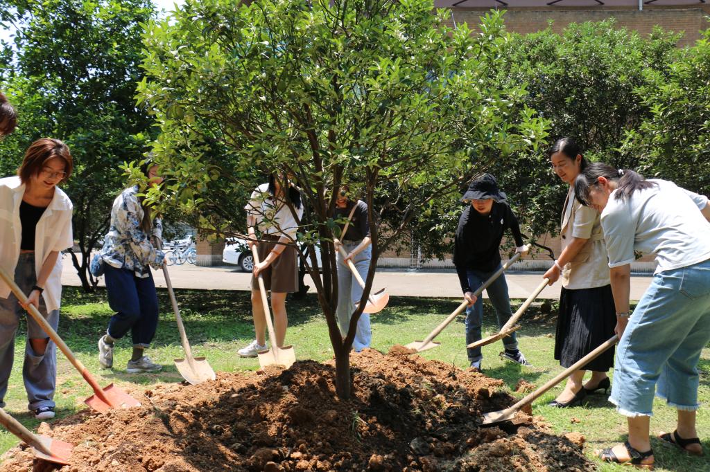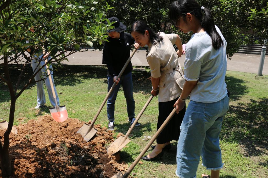 最后四虎影院 师生在林杏琴旁的花坛中栽下毕业纪念树并挂牌,为母校留下一片绿荫,留存青春回忆。