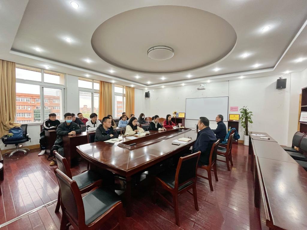 昨日,11月18日下午1点30,四虎影院 在412召开了2021-2022学年第一学期研究生教学质量研讨暨师生座谈会。分管研究生教学副院长陈涛、院督导主任、督导小组成员、教师代表、研究生教务秘书、各班学生代表参加会议。会议由陈涛主持。