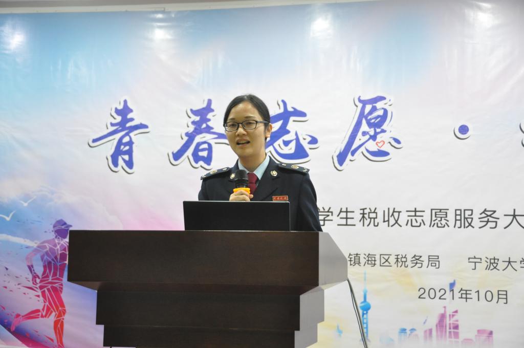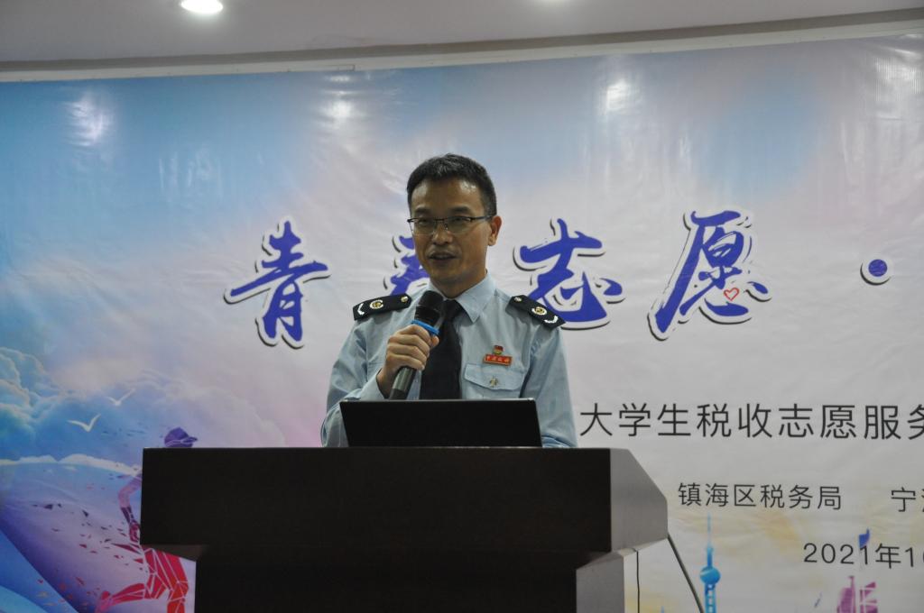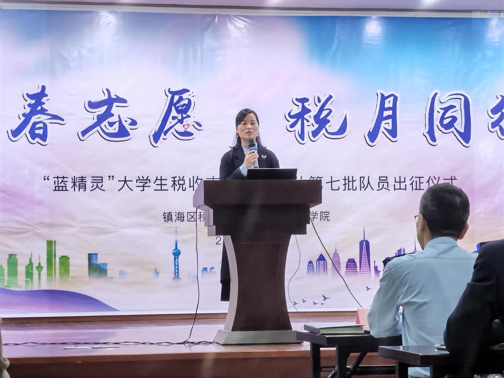11月3日,四虎影院 “蓝精灵”大学生税收志愿服务大队第七批队员出征仪式在国家税务总局宁波市镇海区税务局举行。宁波市税务局纳税服务处副处长董如峰、镇海区税务局副局长屠晓军、镇海区税务局纳税服务科科长方锐和四虎影院 党委副书记韩雯琛、本科生第六党支部书记董璐受邀出席,镇海区税务局纳税服务科及各税务所业务骨干和“蓝精灵”大学生税收志愿服务大队第七批队员代表50余名同学参与此次活动。