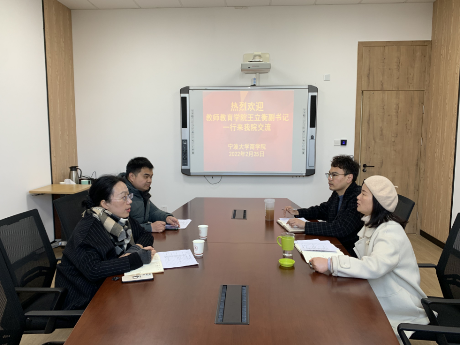 2月25日,我校教师教育学院副书记王立衡、学工办主任范泽平一行来四虎影院 交流学生工作。四虎影院 党委副书记韩雯琛、学工办主任陈彬参与交流。