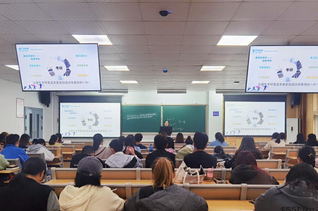 于2021年10月18日和20日在8号楼举办了有关经济、信管和会计专业的考研择校择专业讲座。2019级、2020级相关专业近200名同学参加。