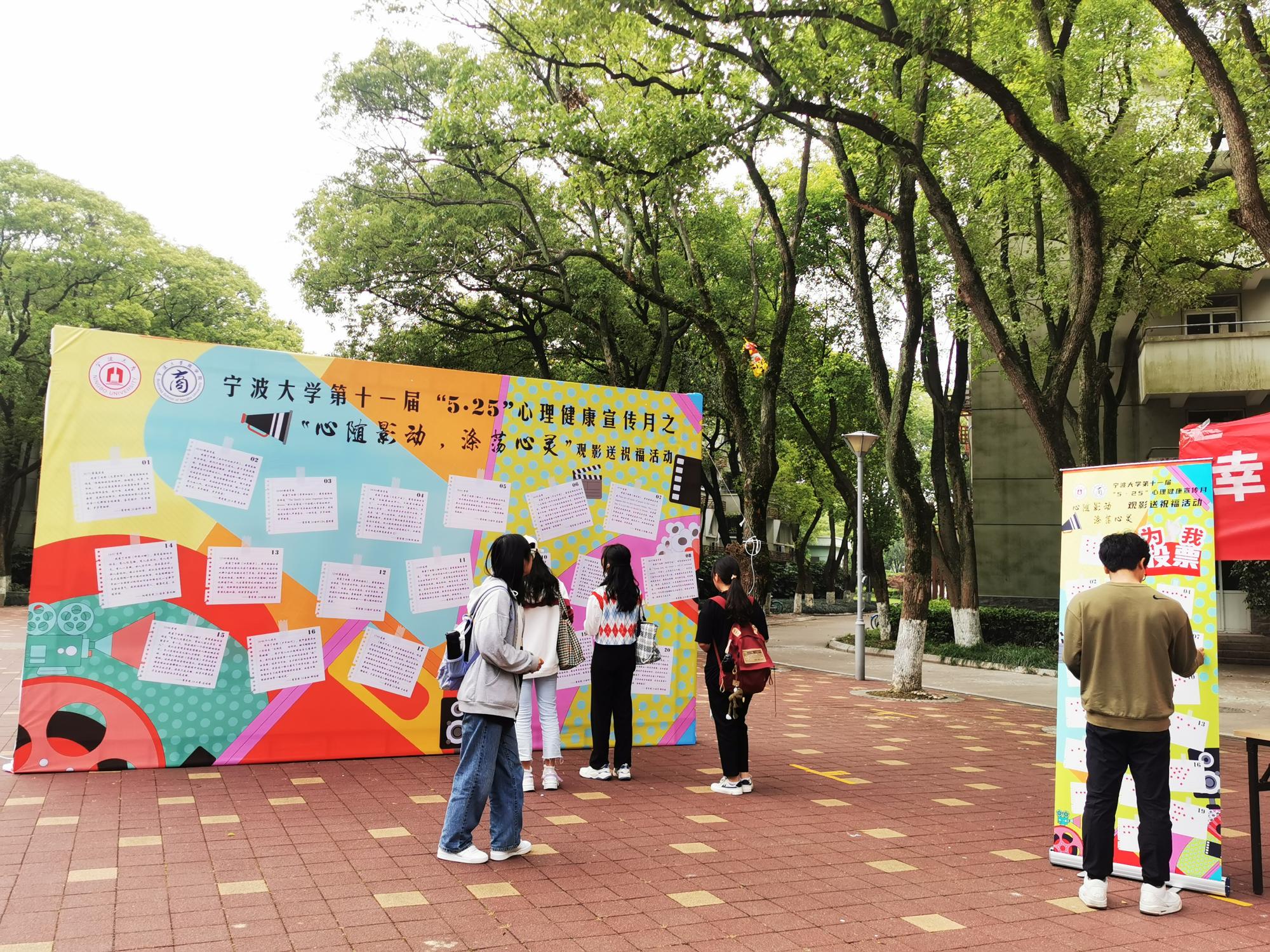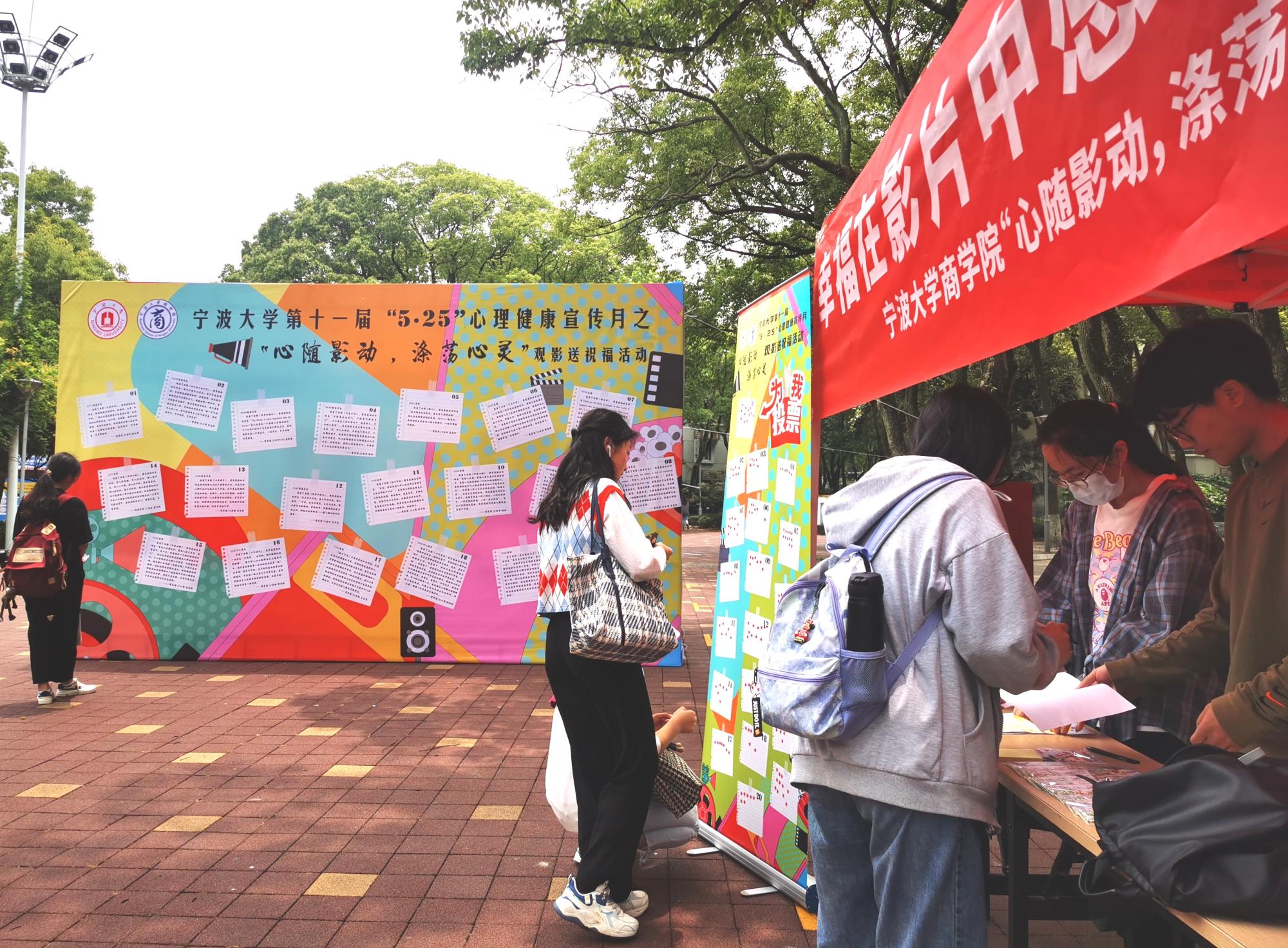 5月25日,为给学生办些实事,对学生进行心理健康教育。四虎影院 在有思广场顺利开展“心随影动,涤荡心灵”大学生心理健康观影祝福语线下投票活动,吸引了近百名同学现场参加。