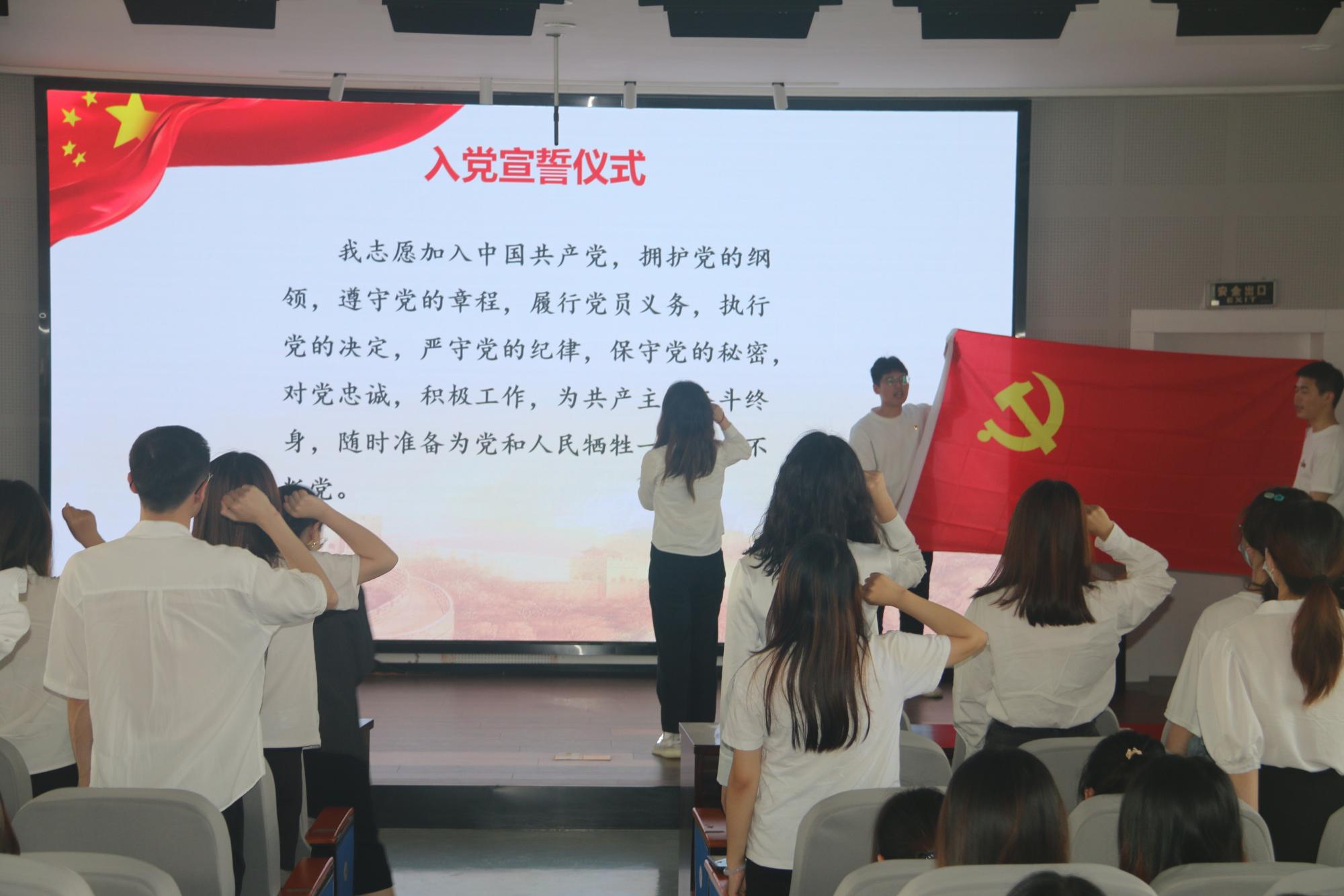 优秀学员代表鲍思辰带领全体预备党员,进行入党宣誓。同学们面对鲜红的党旗,立下了铮铮誓言。