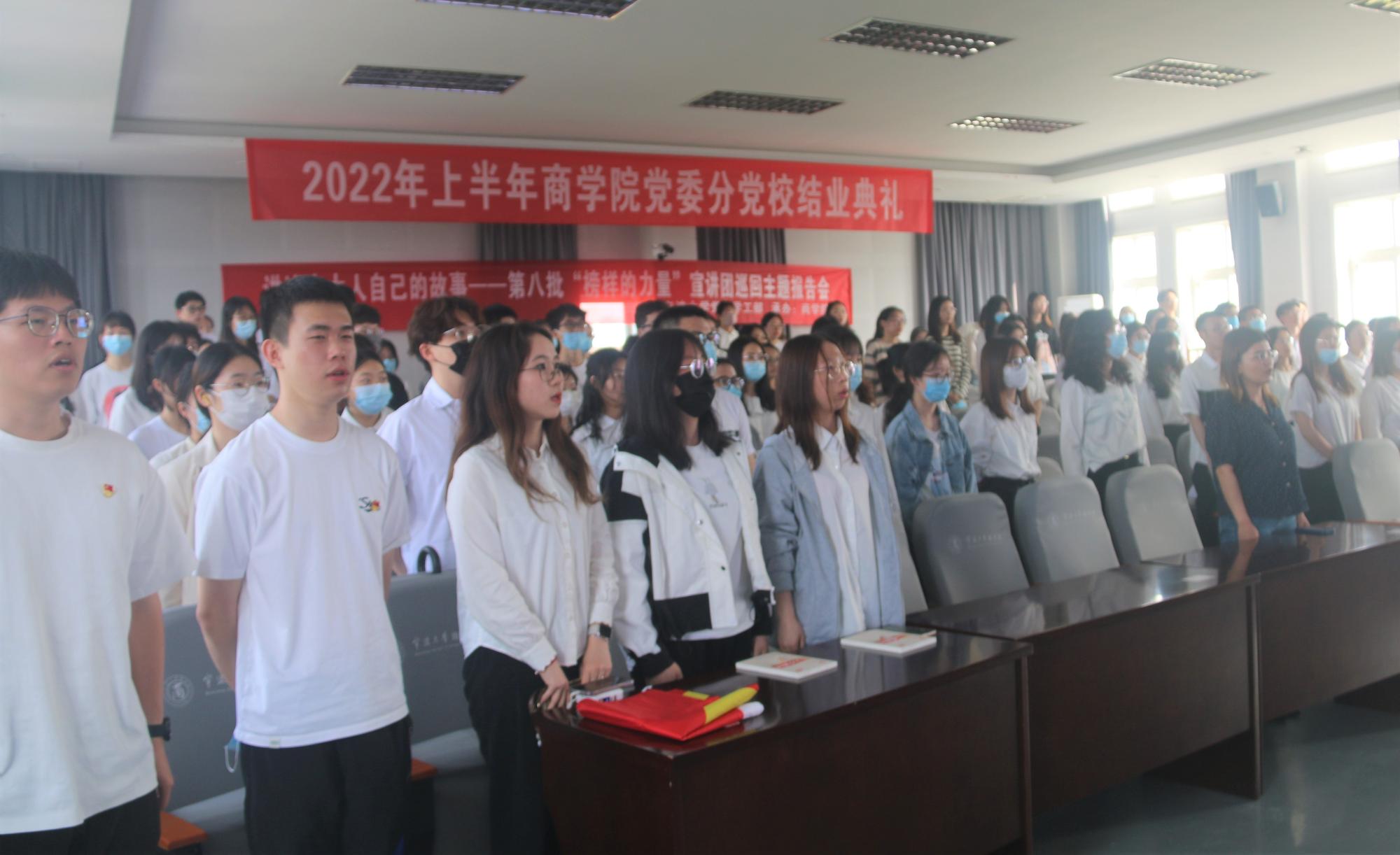 5月25日,四虎影院 党委分党校顺利举行第46期党校结业典礼。学工办党建负责老师陶含怡、辅导员麦尔阿巴、第46期党校全体学员、第47期党校优秀学员参加了此次典礼。