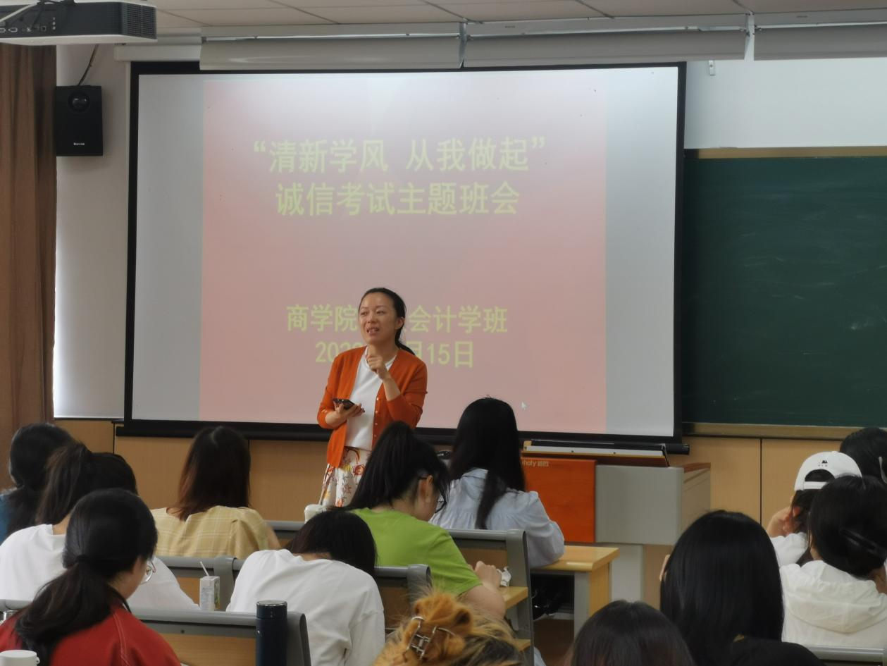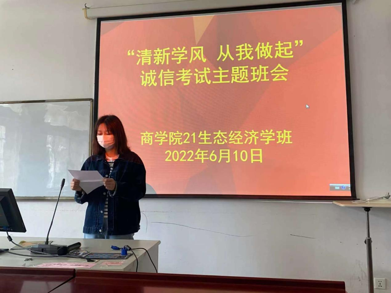对于当代大学生来讲,明礼诚信是立身处世之本,是走向社会的“通行证”。加强大学生清新学风教育,为社会输送德能兼备的合格人才,已是大学教育的当务之急。诚信不仅是一种品行,更是一种准则。活动中,班主任和辅导员一直在强调诚信应考是我们每一个学子始终奉行的良好学风,希望我们每一个人都为清新学风出力。所以在期末考试时,希望我们每一个学子都应谨记这一基本准则。惟诚可以破天下之伪,惟实可以破天下之需。(20工商2班 杨雨婷)
