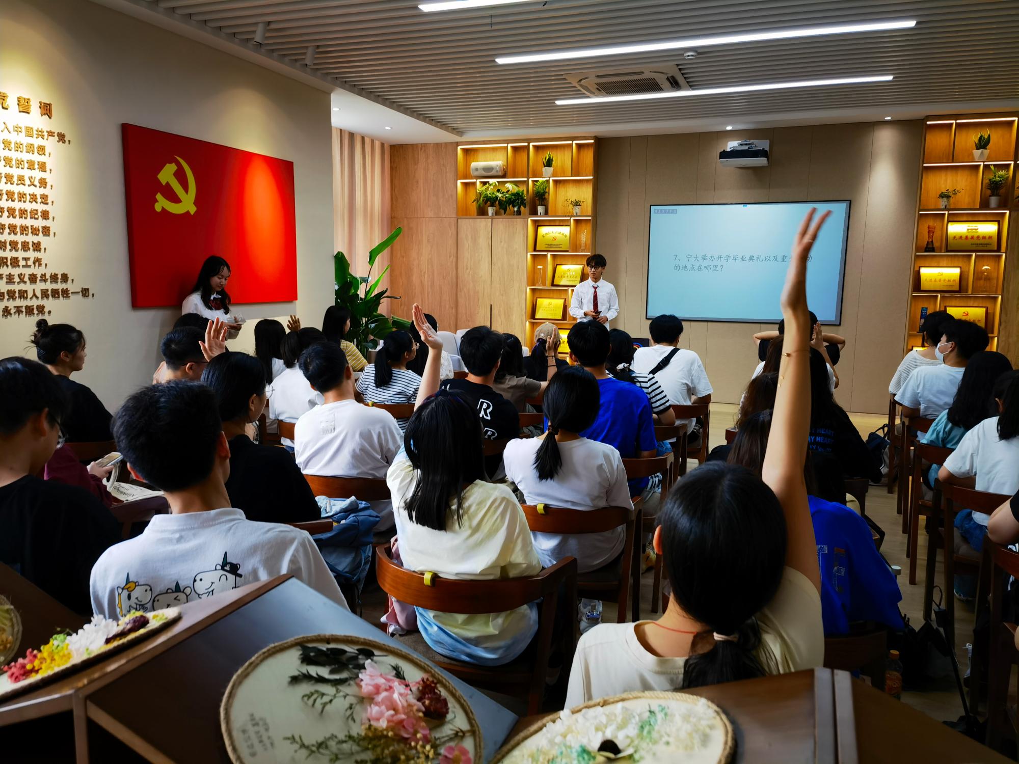云游过程中,特别设置了关于宁波帮相关的知识有奖问答环节,同学们沉浸其中,积极举手参与。