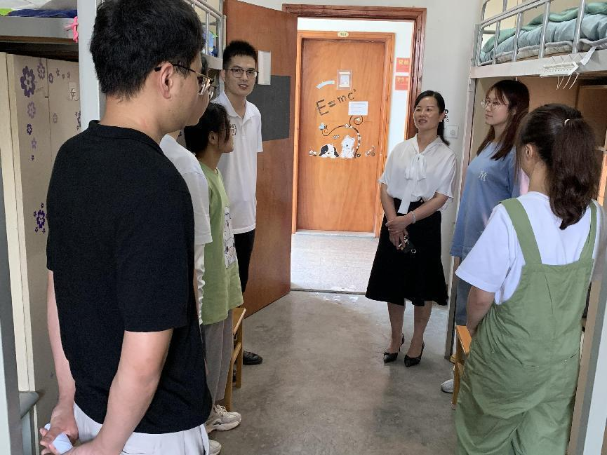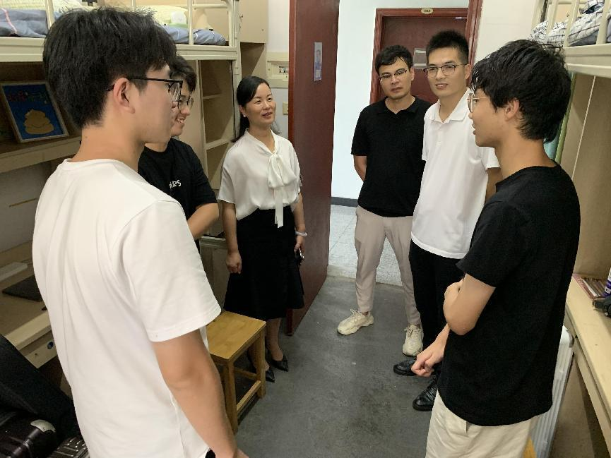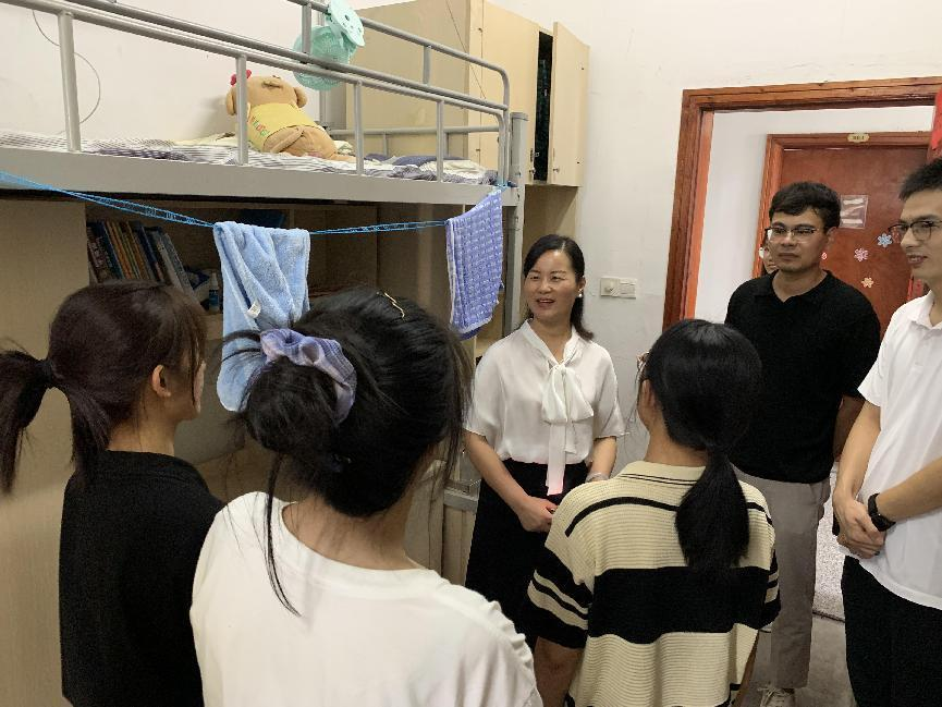 为深入了解新生开学报到情况及生活状态,加强学生寝室安全管理工作,8月29日下午,四虎影院 党委副书记韩雯琛与学工办老师深入22级新生寝室与同学们进行了亲切交流。