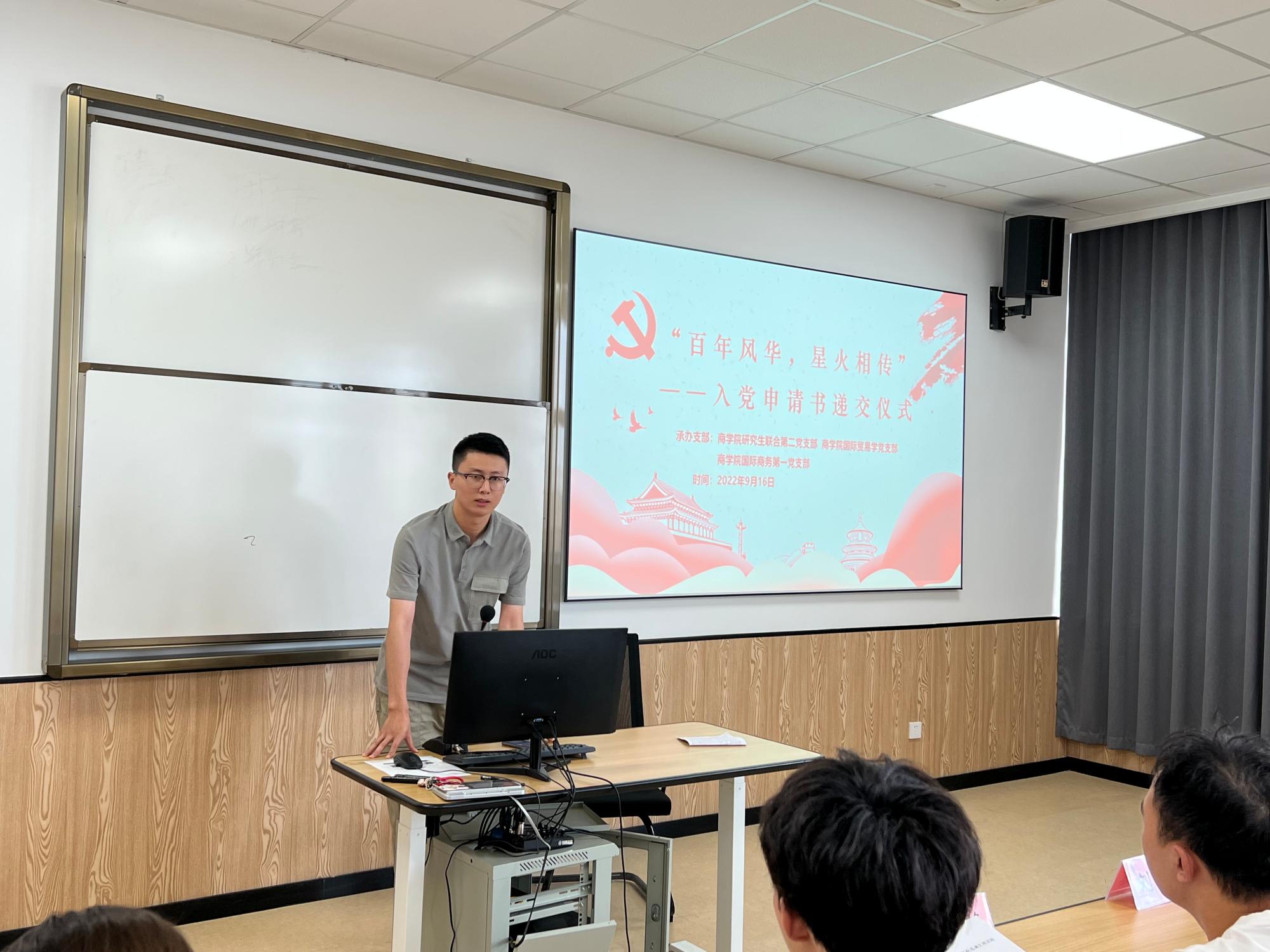 9月16日,四虎影院 于曹光彪楼506教室举办2022级研究生新生入党申请书递交仪式,学院2022级研究生新生参加,四虎影院 研究生辅导员陶含怡受邀出席。