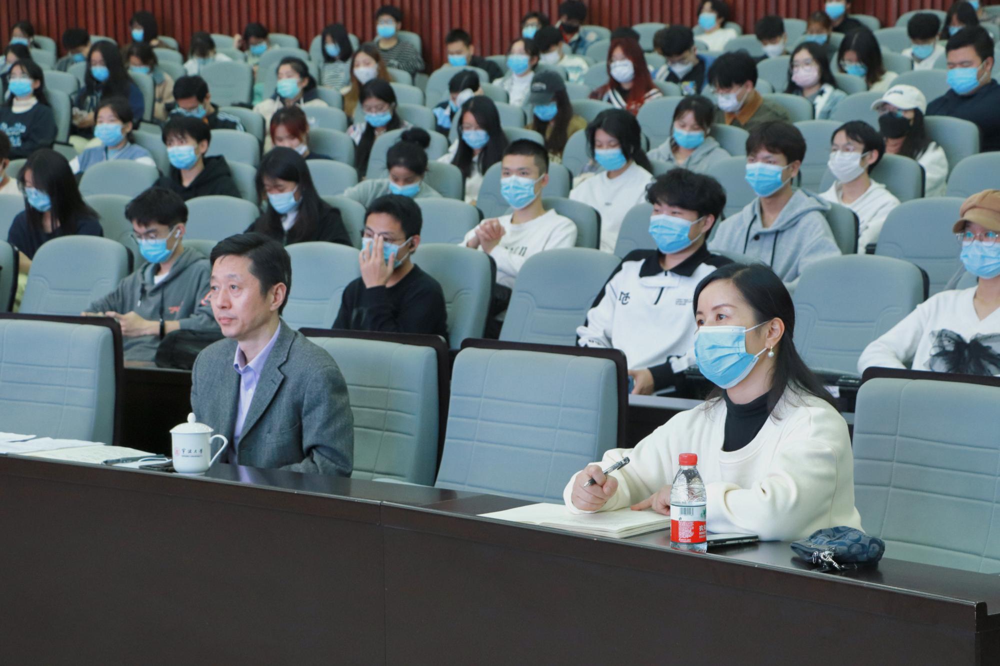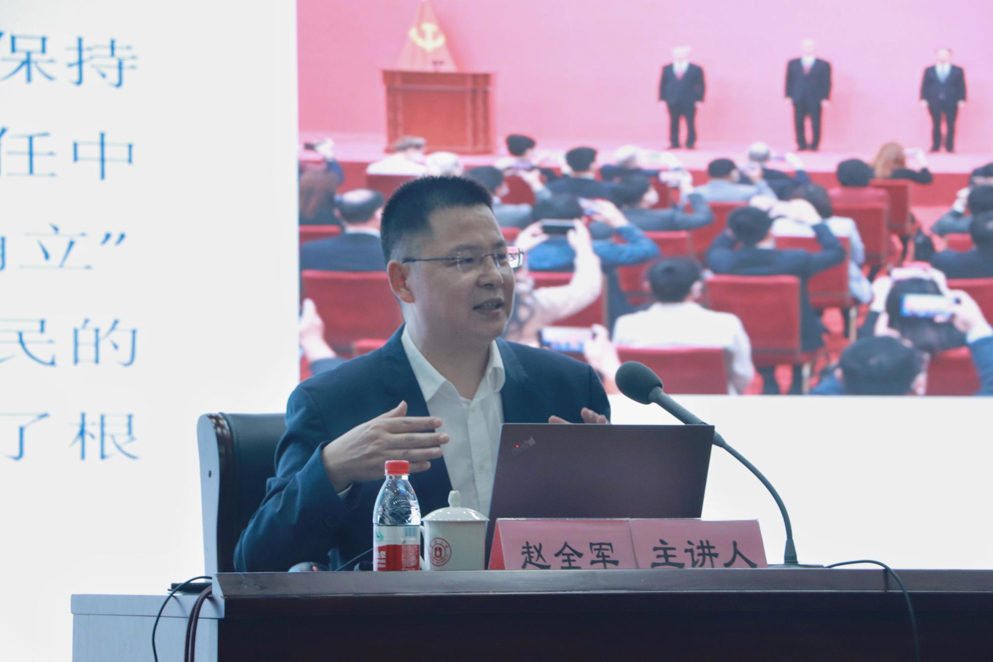 11月22日晚,副校长赵全军在真诚图书馆报告厅为四虎影院 、阳明学院250余名学生讲授“形势与政策”课,四虎影院 党委书记史宏协主持。