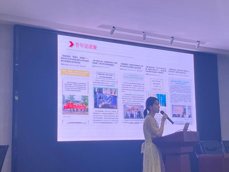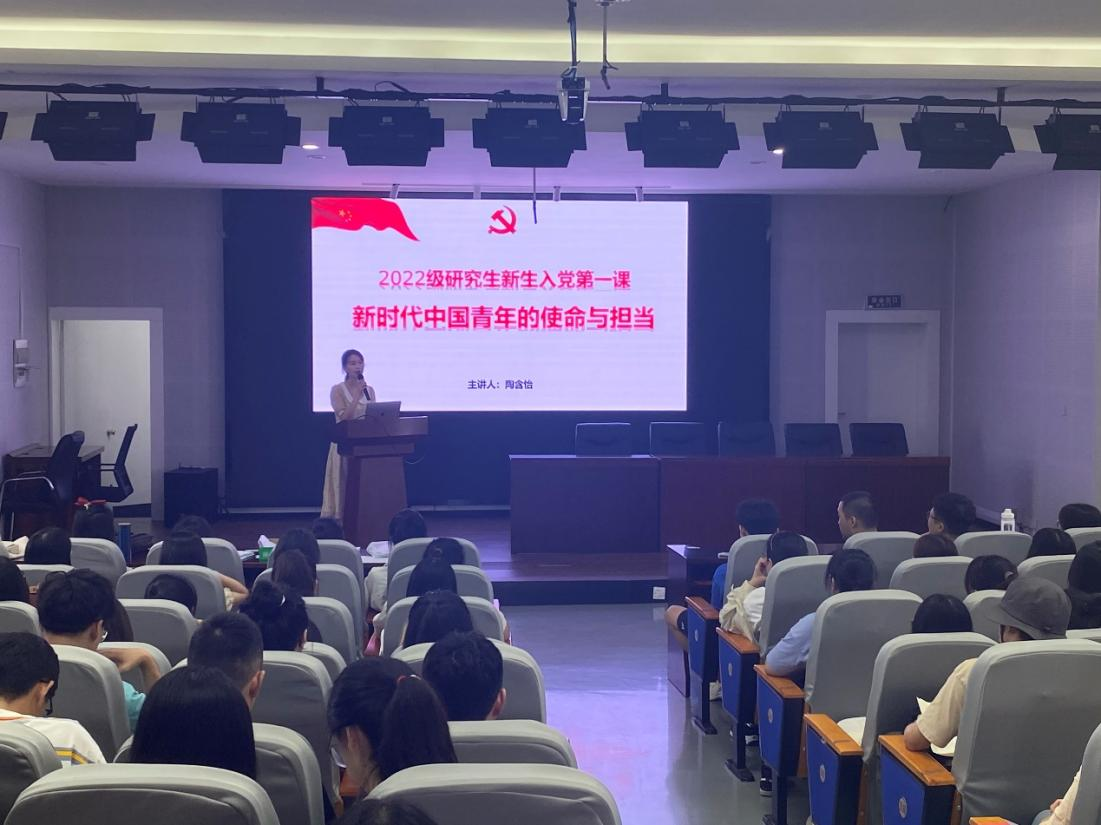 为做好新生思想引领工作,9月2日下午,四虎影院 开展了研究生新生入党第一课,并在课上进行廉洁教育,共181名研究生新生参与,由研究生辅导员陶含怡进行授课。