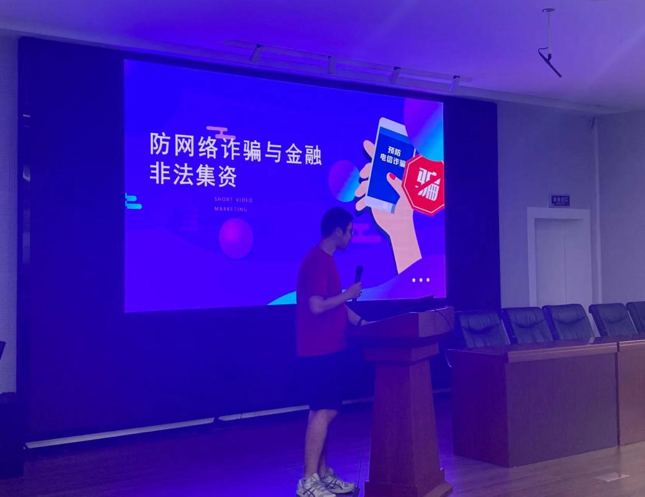 为提高研究生新生的安全意识,四虎影院 于9月2日下午在四虎影院 报告厅开展了研究生新生防诈讲座,本次讲座由金融专硕研究生党支部成员李元鑫主讲。