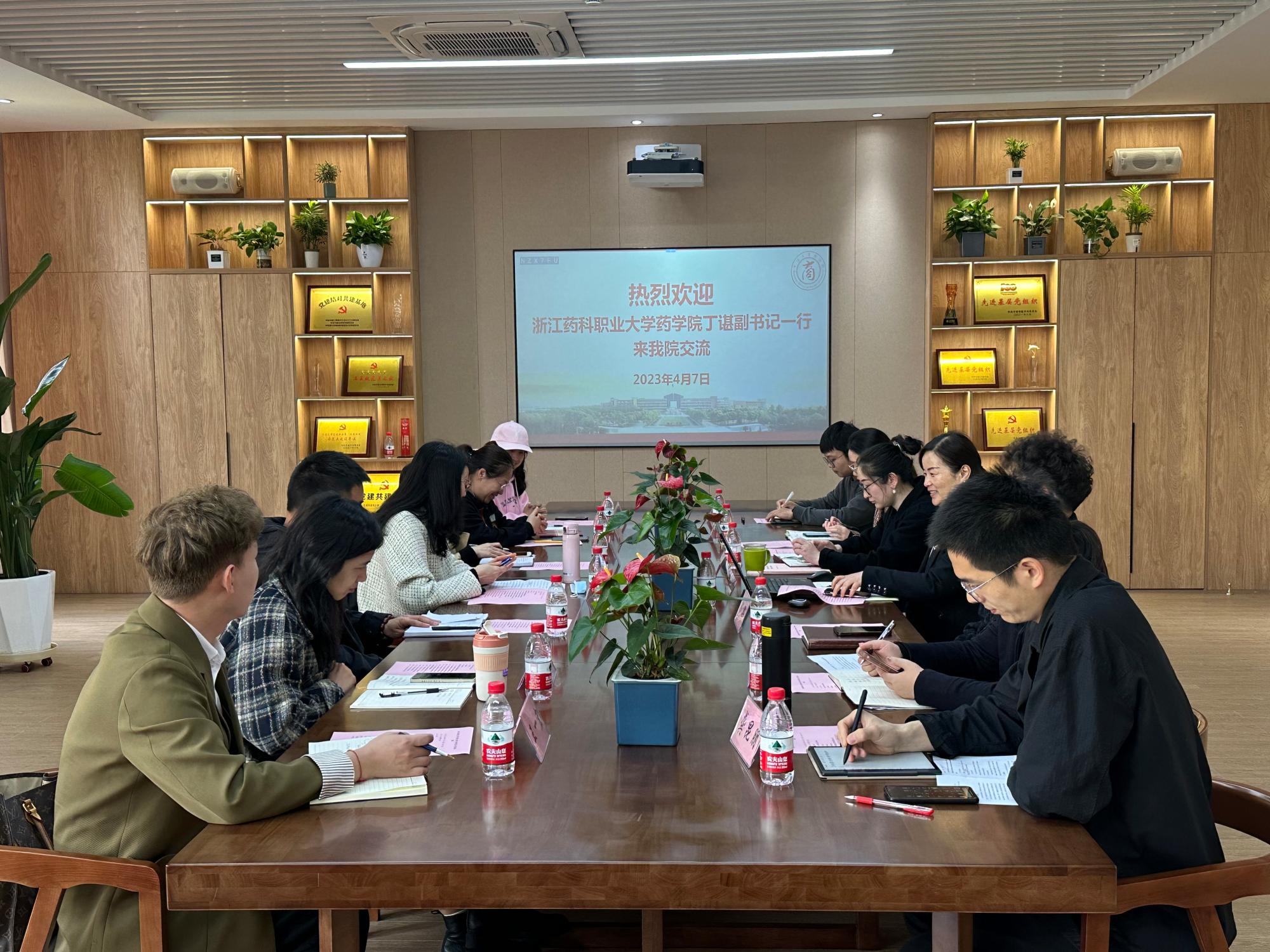 4月7日上午,浙江药科职业大学药学院党委副书记丁谌、学工秘书王婷一行7人来四虎影院 调研学生工作的经验做法。四虎影院 党委副书记韩雯琛、学工办主任陈彬、学工办辅导员周双双、孙健维、陶含怡、龚昆朋、钟冬冬出席接待。