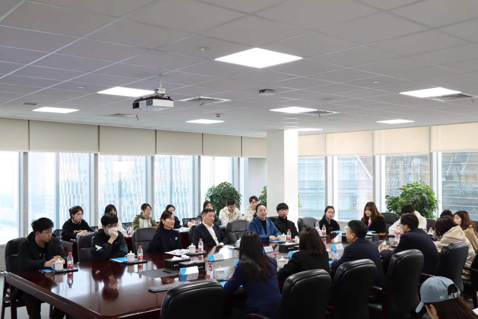 参观结束后,双方召开座谈会。座谈会上,部门经理张晨首先从企业现状及优势、战略及组织文化、人才培养、员工的机遇与挑战四个方面进行介绍,并就学生代表的实习情况以及未来规划进行了交流沟通。资金部部门经理助理富佳能以学长的角度,从职业选择作为出发点,分享入职经验,鼓励同学们在校期间积极锻炼多维能力,为就业做好更充分的准备。