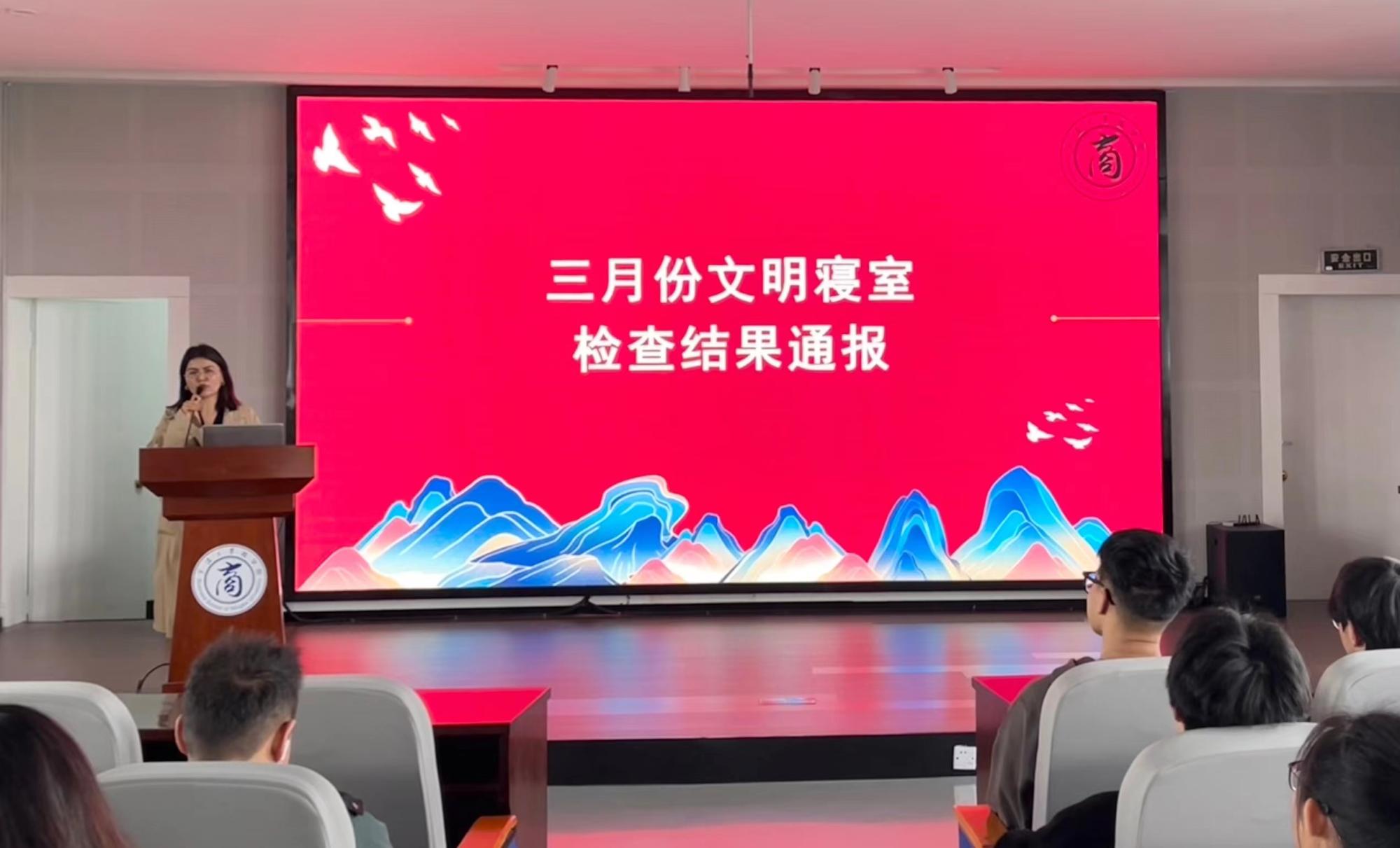 首先,由麦尔阿巴介绍四虎影院 3月份文明寝室检查结果,并对优秀寝室学生的自觉自律和文明就寝行为给予了充分肯定,她鼓励优秀寝室代表以榜样引领更多的同学一起营造文明舒适的寝室环境,她呼吁同学们一定要注意寝室安全,严禁使用违规电器,共同维护安全和谐的寝室环境。