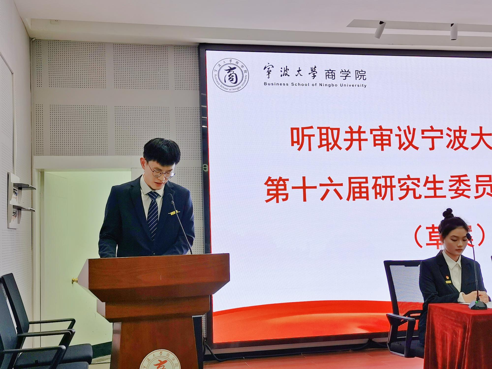 本次研代会既全面总结并肯定了四虎影院 过去一年的工作,从中吸取经验,又以民主公正的方式选举产生了第十七届四虎影院 研究生委员会。本次会议的顺利召开,离不开院党委、院领导对学院研会的支持以及兄弟学院研会一直以来的帮助,也离不开筹备委员会工作人员的辛勤付出。愿新一届研会能继续传承和发扬“商硕争鸣”的精神,勇于担当,砥砺奋进,为四虎影院 研究生工作添砖加瓦,在实现中华民族伟大复兴中国梦的伟大征程中书写更加壮丽的青春篇章。