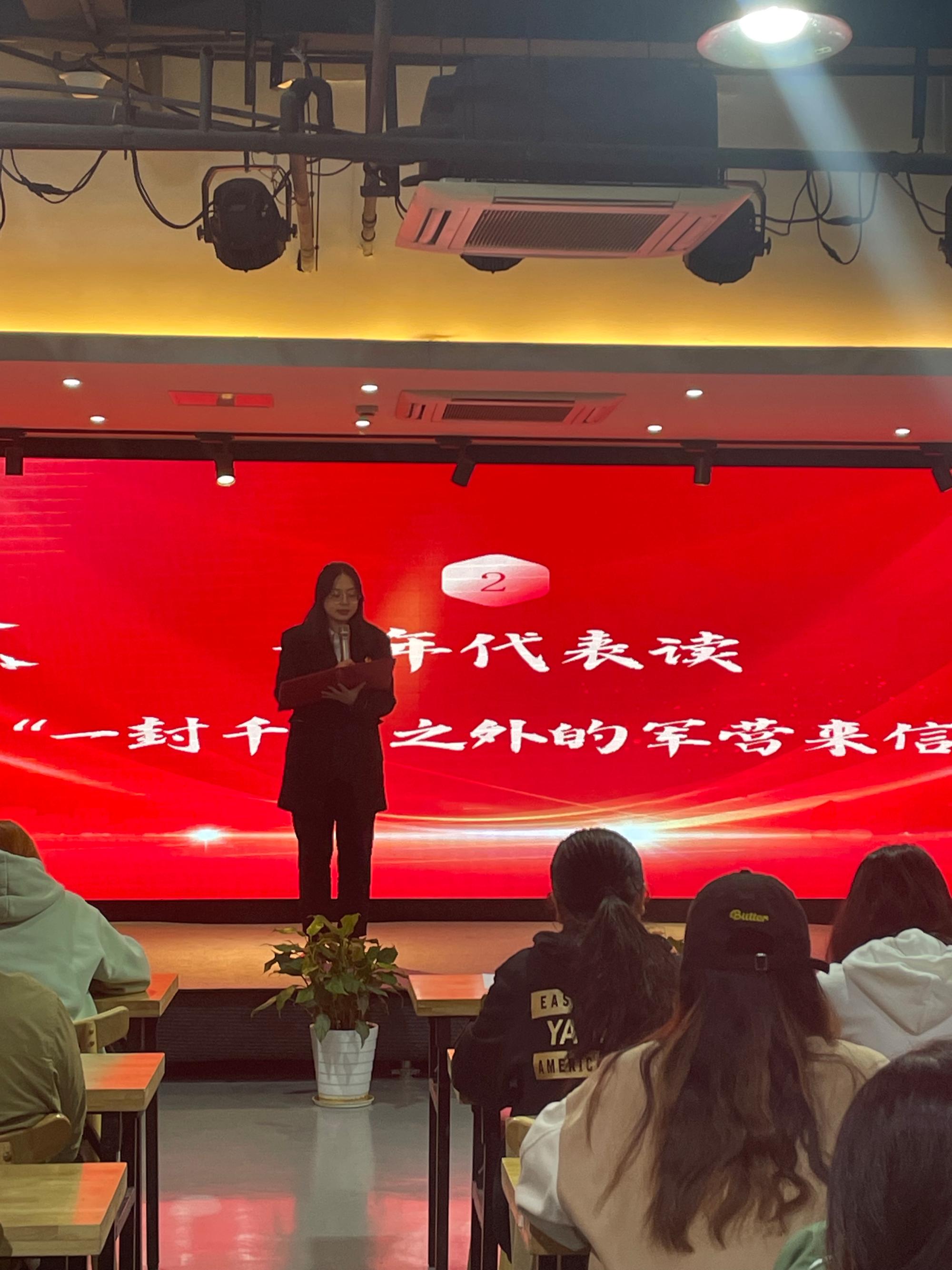 随后,青年代表胡升越诵读了“一封千里之外的军营来信”。这封信件,来自于四虎影院 18级信管专业的李凡,她于2022年应征入伍,成为了一名女兵。信中,李凡讲述了自己在部队的生活,除去种种艰苦训练,她印象最深的是晨跑看到的绚烂日出。在李凡看来,西部计划是一个风口、一块跳板、一个绝佳的契机,可以让广大青年在实现梦想的同时实现自身的价值。李凡学姐说道:“清晨的日光正和煦、风中有晨露的清新,我最终成为了年少时自己最想成为的样子,无愧于自己、无愧于家国!”